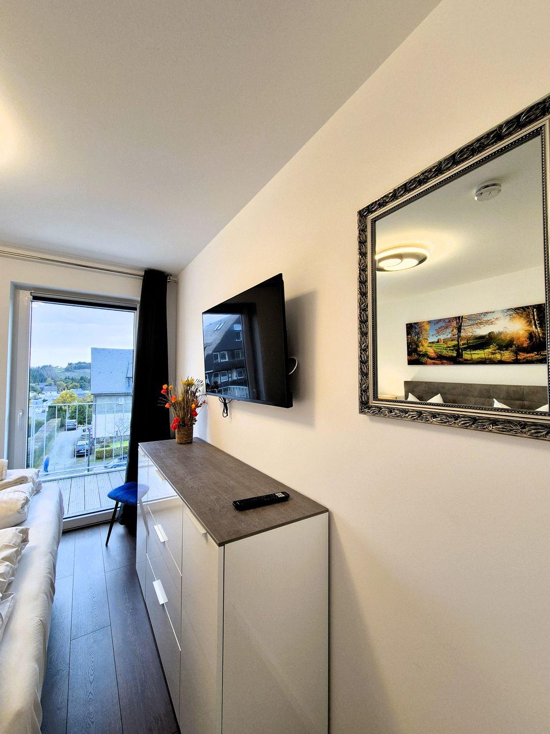 In allerbester zentraler Lage von Winterberg Stadt (300 Meter bis zum Winterberger Marktplatz, fußläufig zum Einstieg in das Winterberger Skiliftkarrussel) befindet sich das lichtdurchflutete und hochwertig ausgestattete Winterberg Appartement 21128 im 3. OG mit Aufzug.
