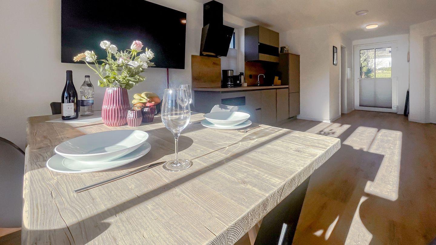 Die Ferienwohnung auf einem über 800 m² großen, abgeschlossenen Grundstück überzeugt durch ihre moderne Ausstattung und eine helle, einladende Atmosphäre. Mit zwei komfortablen Schlafzimmern, einem stilvollen Wohnbereich und einer offenen Küche ist die Wohnung perfekt gestaltet, um gemeinsam Zeit zu verbringen und unvergessliche Erinnerungen zu schaffen. Die gemütliche Sofaecke und der Essbereich laden zu entspannten Abendessen oder Spieleabenden ein. Für die Unterhaltung sorgen gleich drei große Fernseher, die internationale Kanäle empfangen.