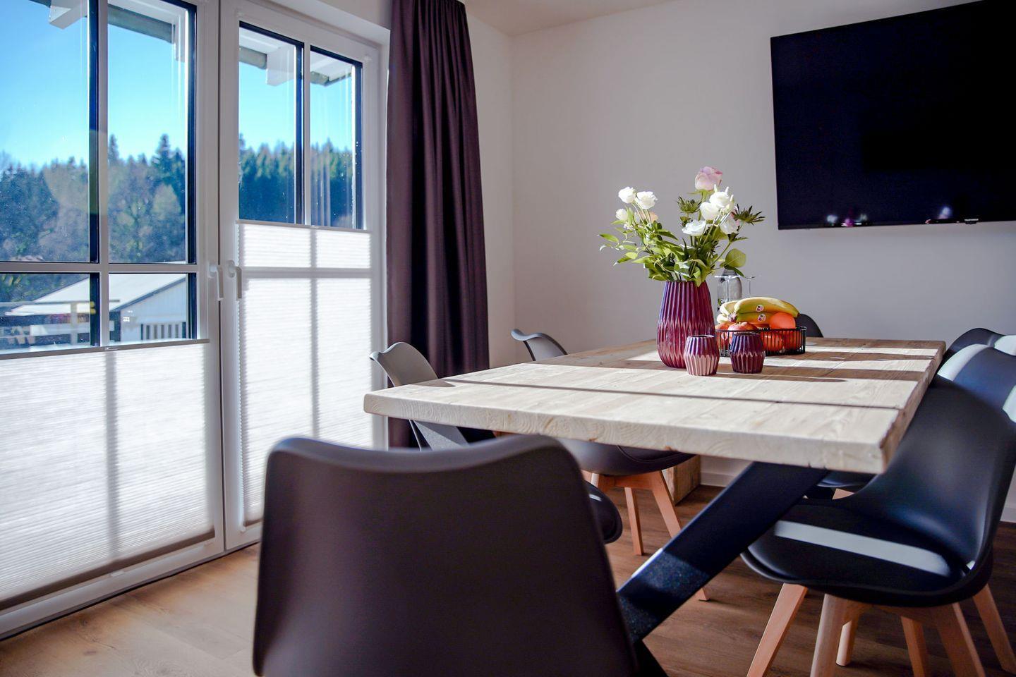 Ein weiteres Highlight der Wohnung ist der teilüberdachte Balkon, von dem aus Sie einen außergewöhnlichen Blick auf die umliegende Berglandschaft genießen können. Nach einem Tag voller Erlebnisse in der Natur können Sie es sich in der bodengleichen Dusche oder im gemütlichen Wohnzimmer bequem machen. Hier sorgt die Fußbodenheizung für wohlige Wärme und zur Entspannung steht Ihnen bei Bedarf auch eine Waschmaschine sowie ein Trockner zur Verfügung.