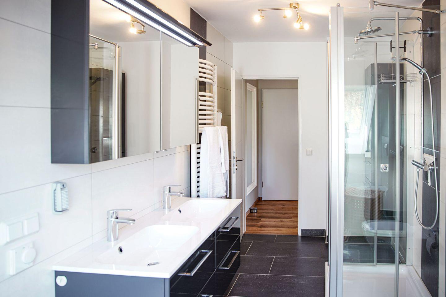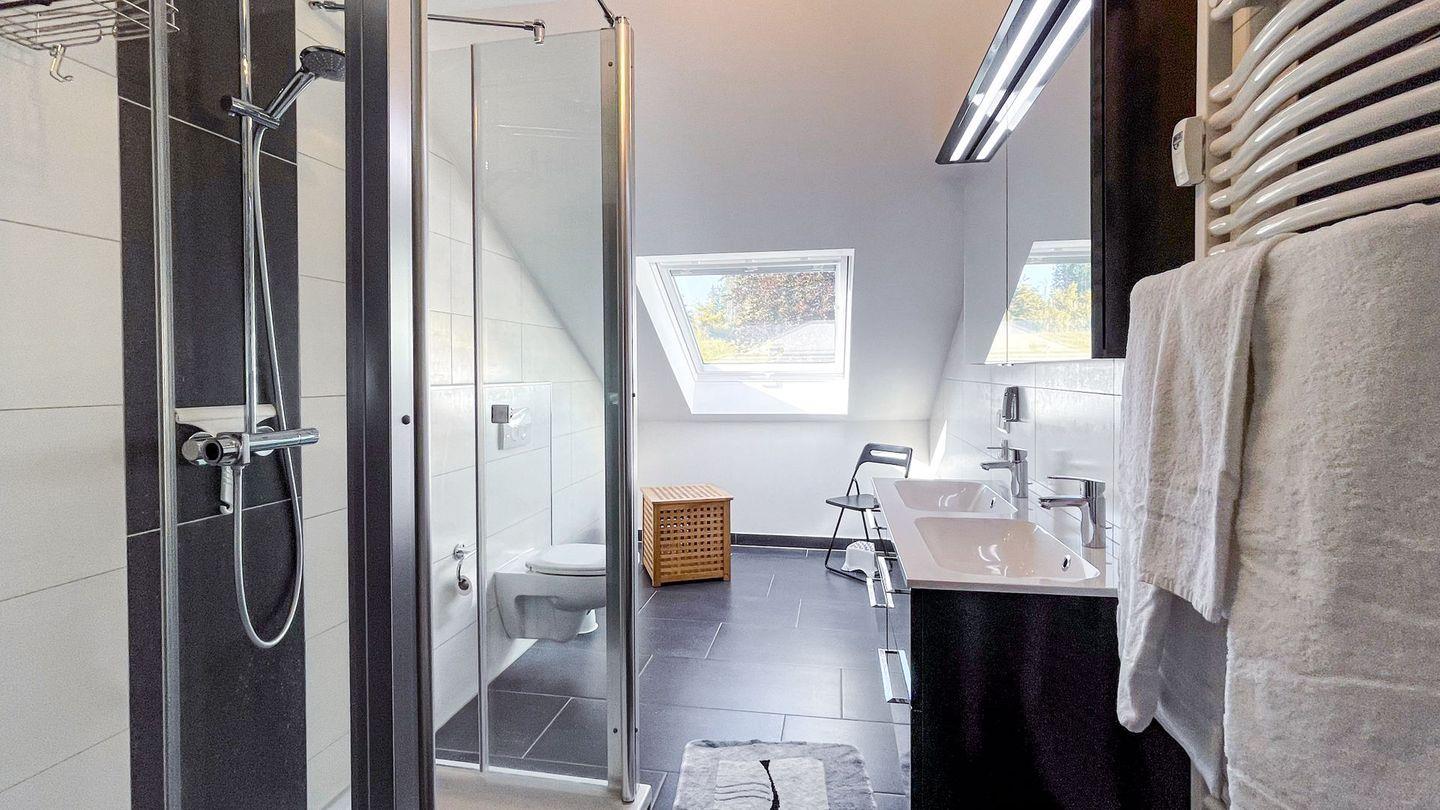 Besonders hervorzuheben ist die barrierefreie Dusche im modernen Badezimmer, das mit hochwertigen Annehmlichkeiten wie Seife, Shampoo, Handtüchern und einem Haartrockner ausgestattet ist. Die Ferienwohnung Siebenstern ist eine Nichtraucher-Wohnung was für frische Luft und ein angenehmes Wohlfühlambiente sorgt.