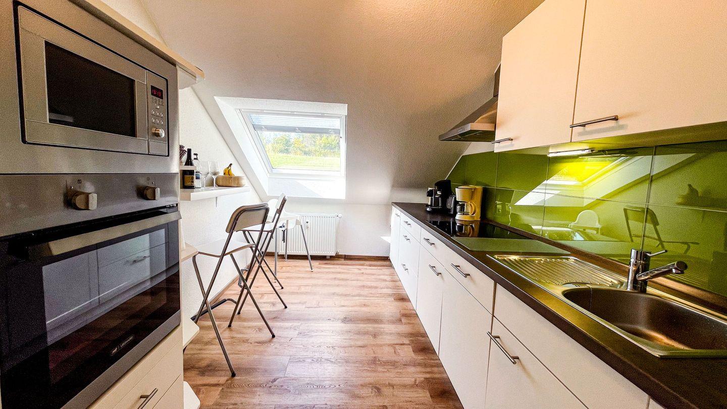 Ein Highlight der „FeWo Siebenstern“ ist der Balkon, wo Sie bei einem Glas Wein den Tag ausklingen lassen und den Panoramablick genießen können. Für Familien sind auch Kinderhochstühle und Babybetten vorhanden, sodass sich auch die kleinen Gäste wohlfühlen können.