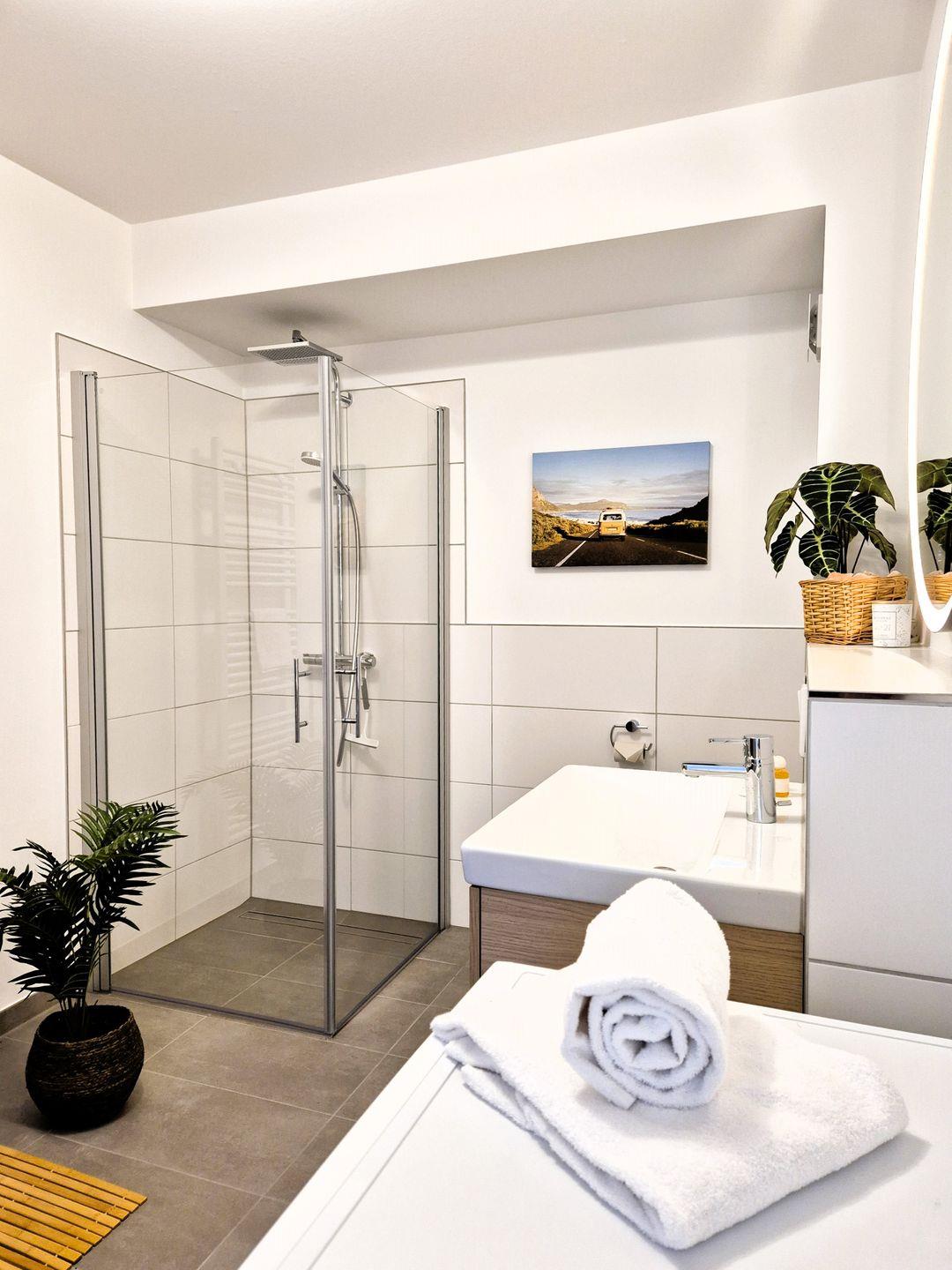 Insgesamt ca. 55 m² Wohnfläche verteilen sich auf ein geräumiges Wohnzimmer mit TV, einer offenen, perfekt eingerichteten Küche mit großem Esstisch,ein geschmackvoll eingerichtetes Schlafzimmer mit Doppelbett, Kommode, Kleiderständer und einem 2. Fernseher sowie ein großzügiges Badezimmer, in dem sich außer einer Waschmaschine auch noch eine Infrarotkabine für 2 Personen befindet. Vom Wohnzimmer aus haben Sie einen Zugang zum großen Balkon, welcher außerhalb der Wintersaison mit Gartenmöbel bestückt ist. Für die 3. Person steht eine Schlafcouch im Wohnzimmer zur Verfügung.