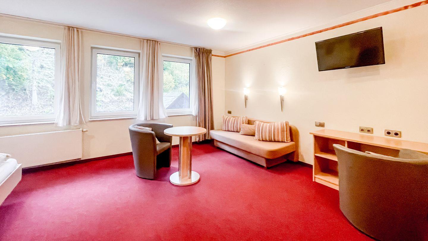Willkommen in unserem charmanten Zimmer für bis zu drei Personen! Mit 28 qm bietet es ausreichend Platz zum Entspannen. Es verfügt über ein komfortables Doppelbett und ein Einzelbett/Sofa sowie einen modernen Fernseher.