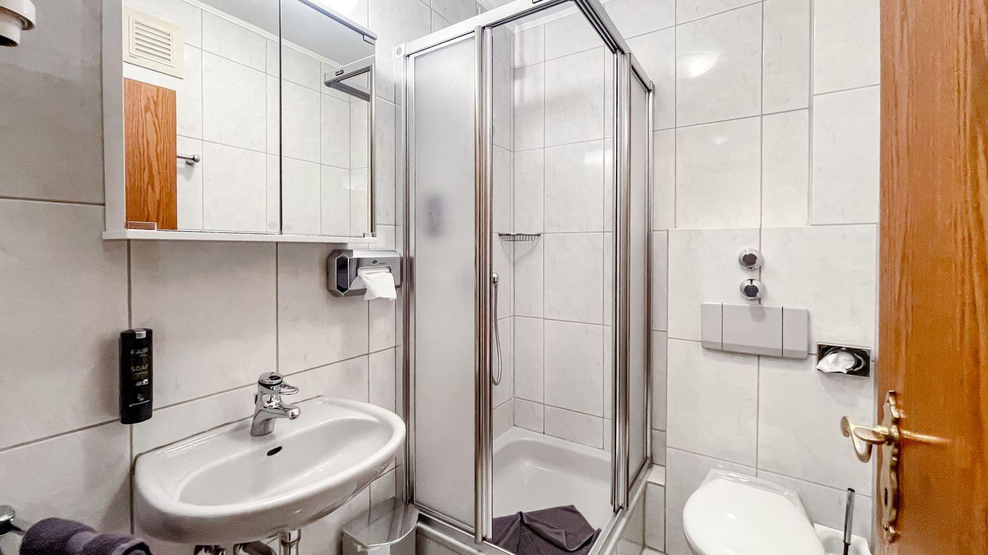 Das angrenzende Duschbad ist sowohl praktisch als auch stilvoll gestaltet und ermöglicht Ihnen eine erfrischende Dusche nach einem langen Tag.