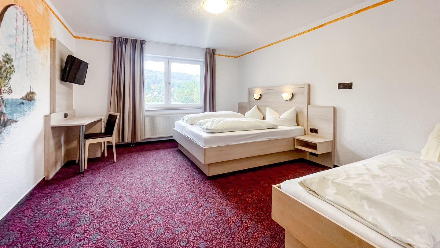 Herzlich willkommen in unserem charmanten Zimmer, das perfekt für drei Personen geeignet ist. Mit einer großzügigen Fläche von 28 qm bietet es viel Raum zum Entspannen und Wohlfühlen. Ausgestattet mit einem bequemen Doppelbett sorgt es für eine erholsame Nachtruhe. Zudem gibt es ein komfortables Einzelbett. Ein moderner Fernseher steht Ihnen zur Verfügung, um Ihre Lieblingssendungen zu genießen.