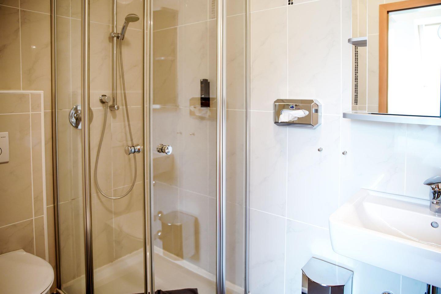 Das angrenzende Duschbad ist sowohl praktisch als auch stilvoll gestaltet und ermöglicht Ihnen eine erfrischende Dusche nach einem langen Tag.