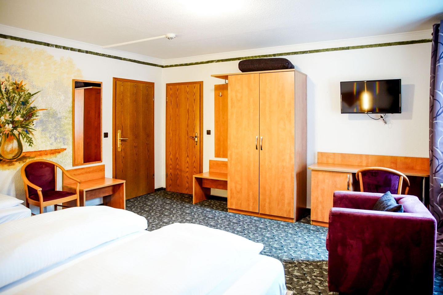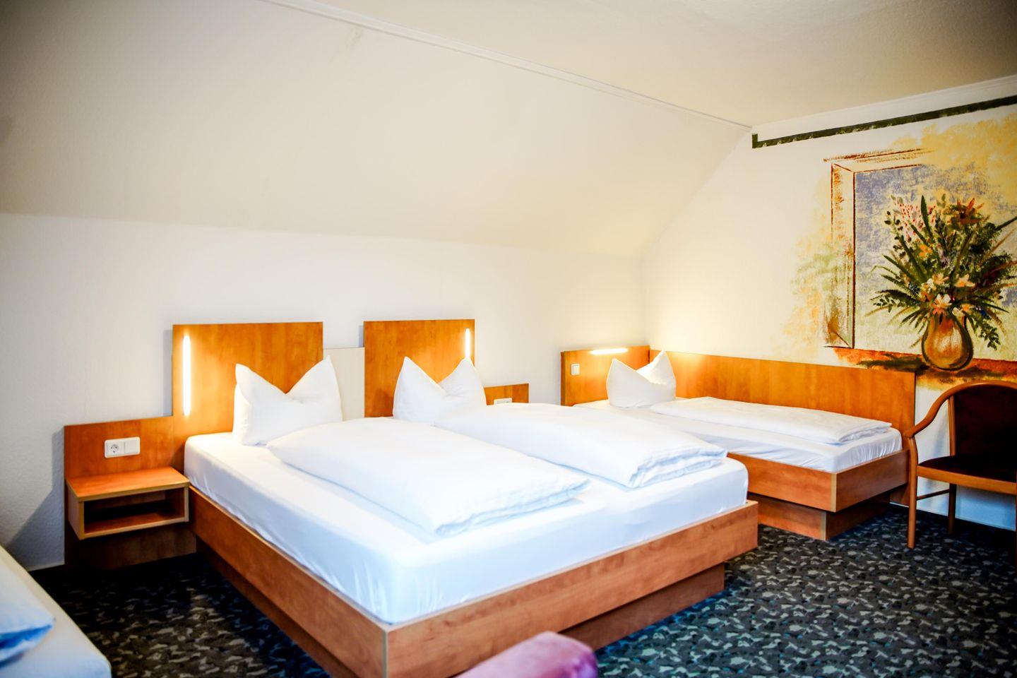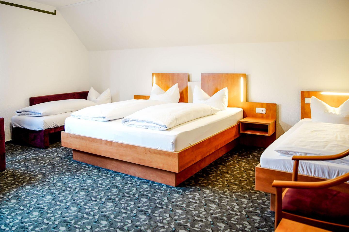 Willkommen in unserem charmanten Zimmer für bis zu vier Personen! Mit 29 qm bietet es ausreichend Platz zum Entspannen. Es verfügt über ein komfortables Doppelbett, einem Einzelbett, einem Schlafsofa, sowie einen modernen Fernseher.