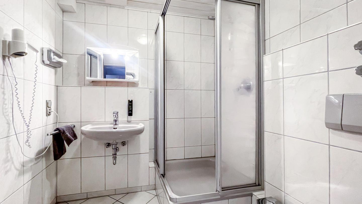 Das angrenzende Duschbad ist sowohl praktisch als auch stilvoll gestaltet und ermöglicht Ihnen eine erfrischende Dusche nach einem langen Tag.
