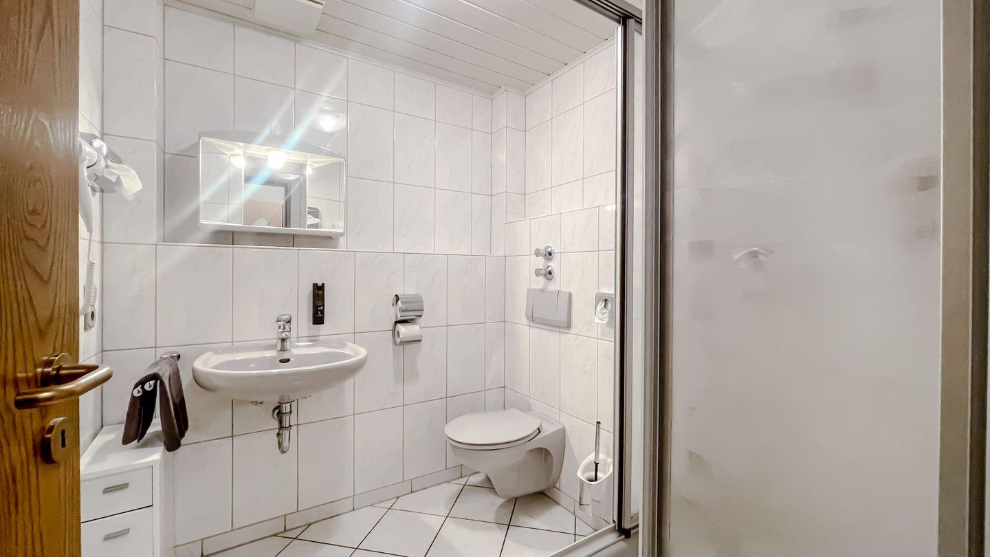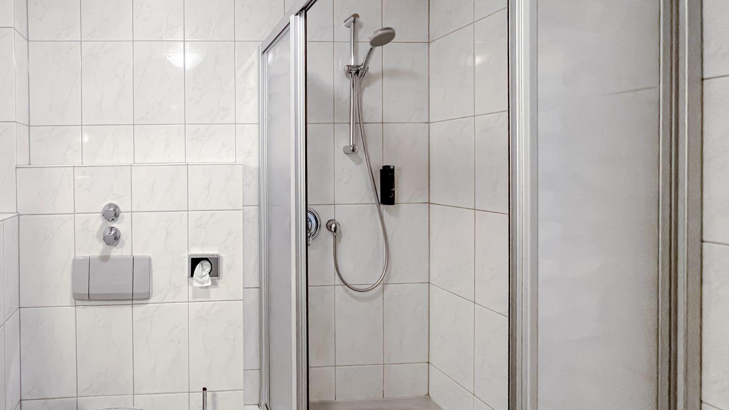 Das angrenzende Duschbad ist sowohl praktisch als auch stilvoll gestaltet und ermöglicht Ihnen eine erfrischende Dusche nach einem langen Tag.