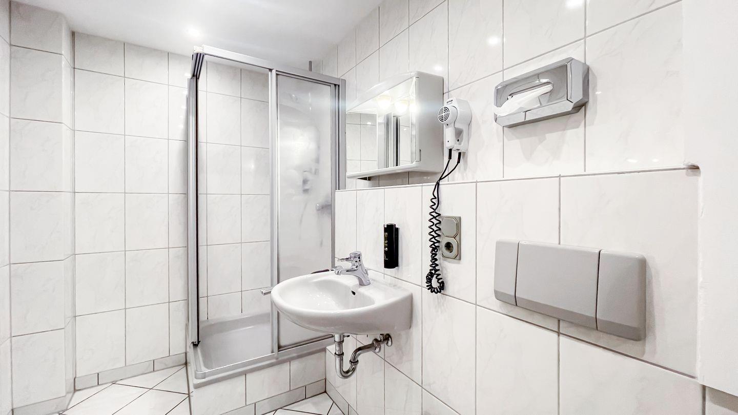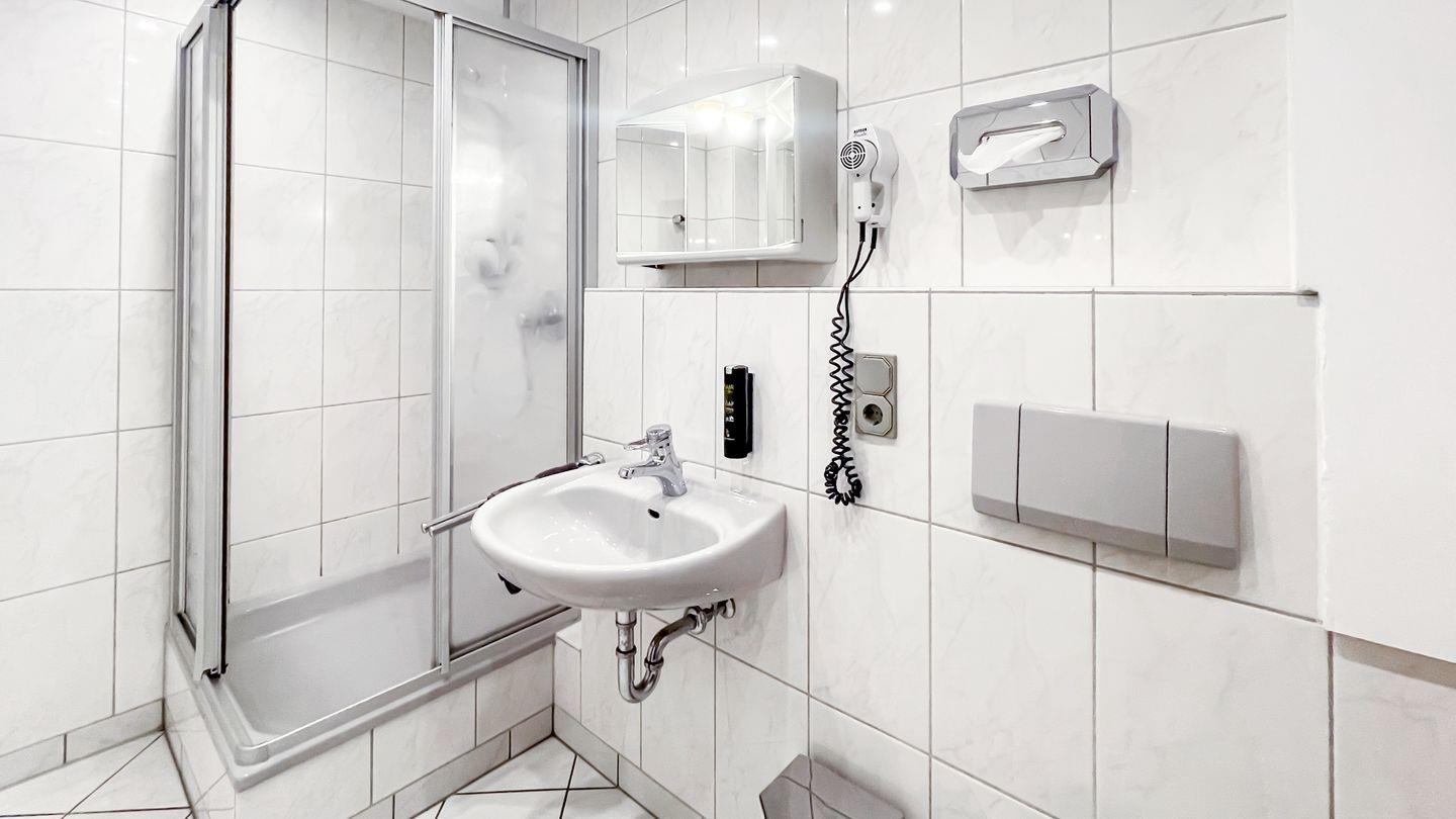 Das angrenzende Duschbad ist sowohl praktisch als auch stilvoll gestaltet und ermöglicht Ihnen eine erfrischende Dusche nach einem langen Tag.