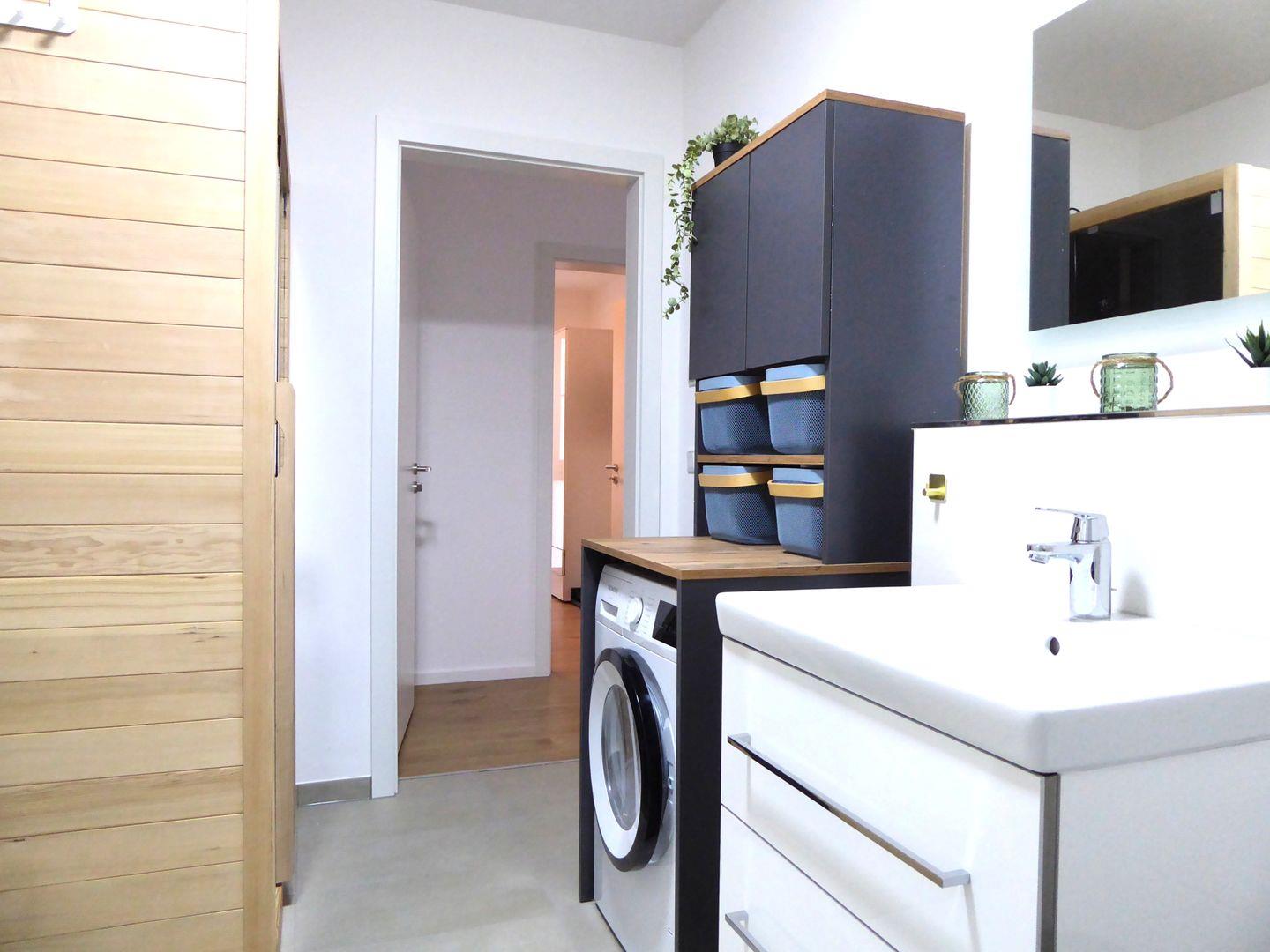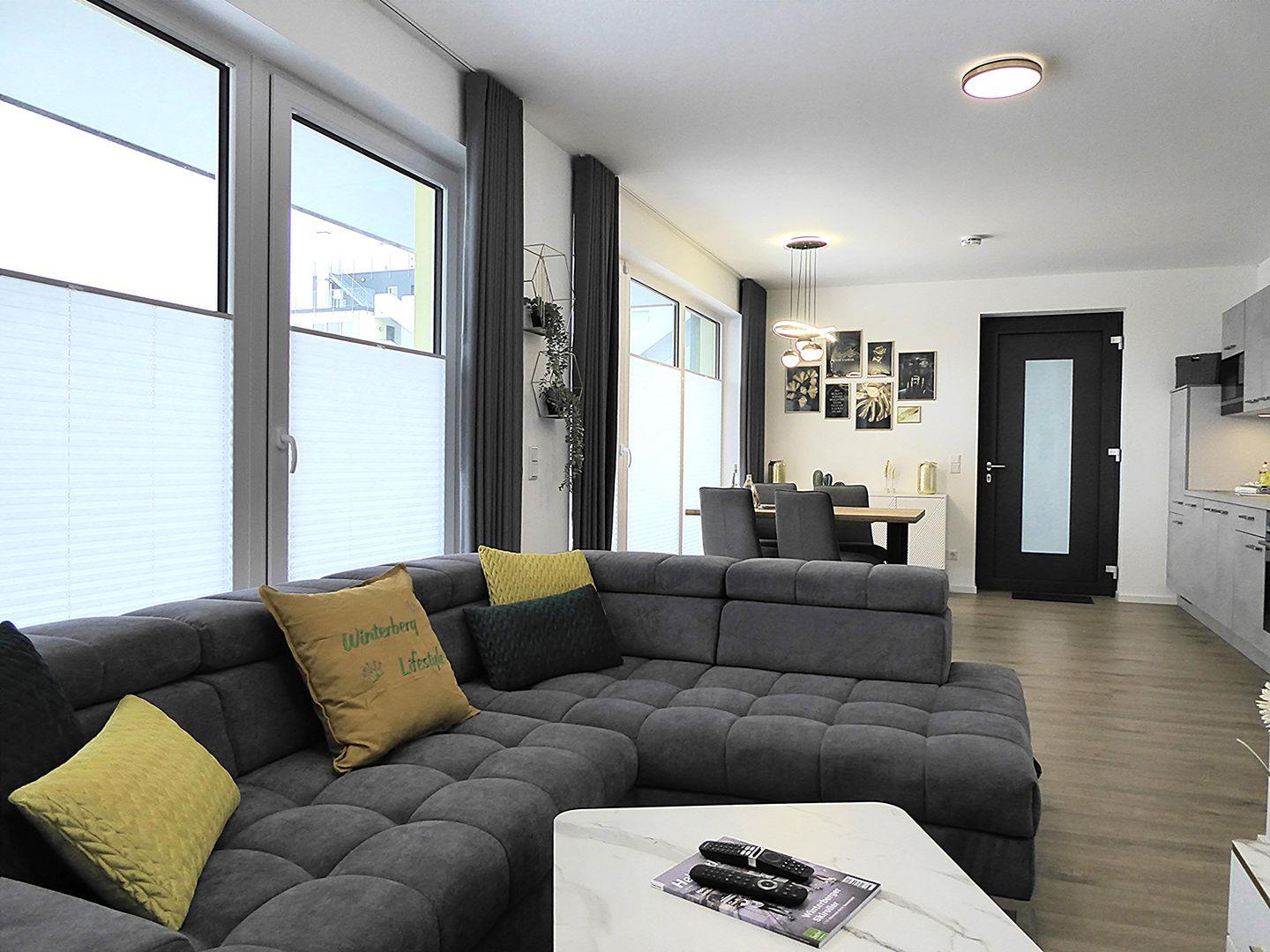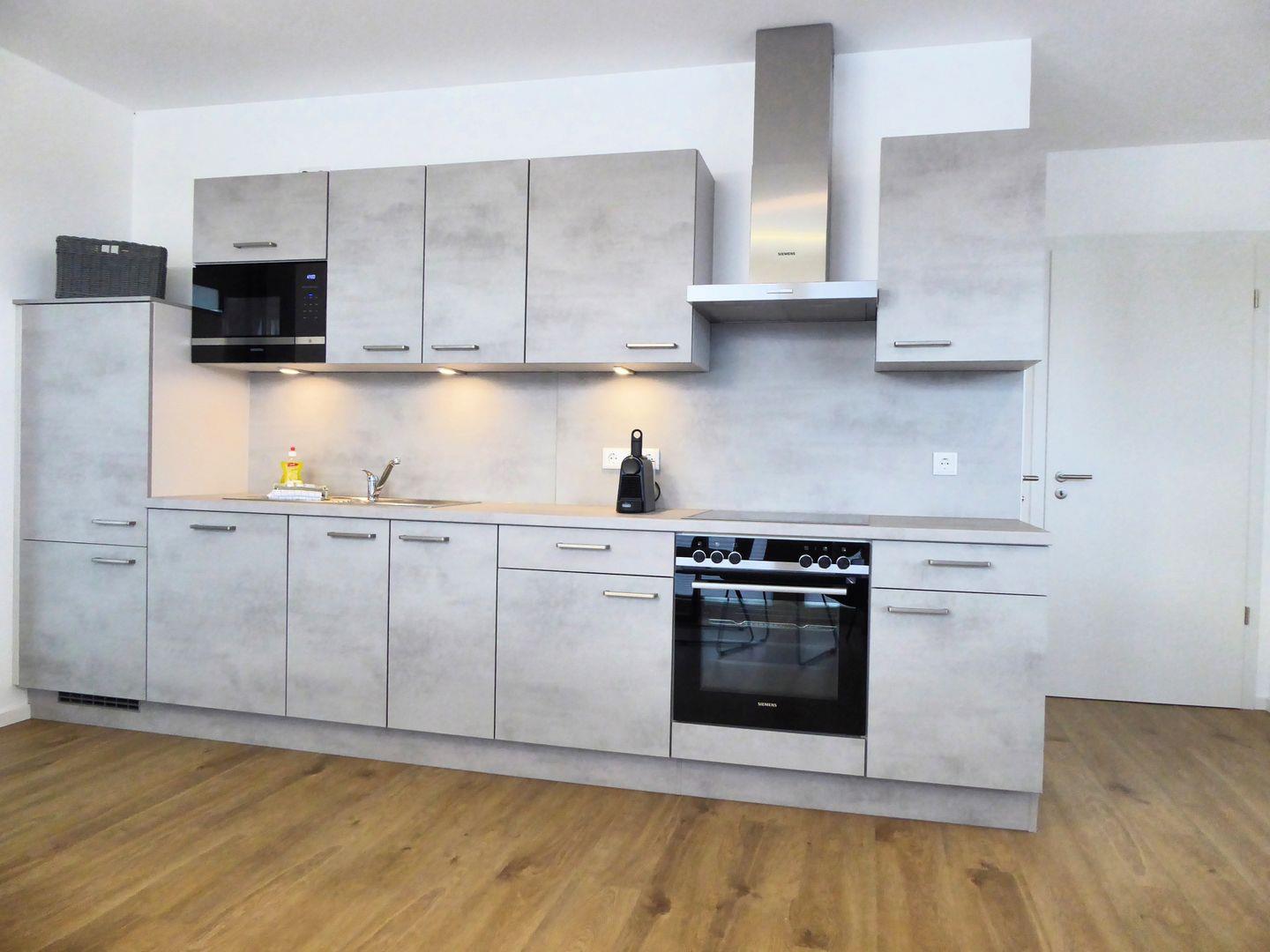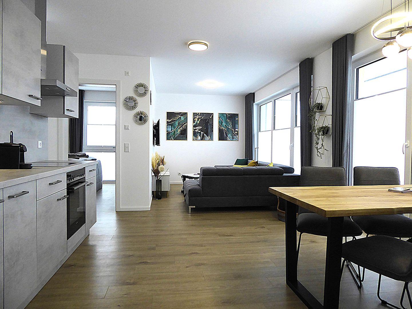Ein Highlight des Apartments ist die voll ausgestattete Küche, die Ihnen die Freiheit gibt, Ihre Lieblingsgerichte zuzubereiten. Genießen Sie Ihre Mahlzeiten am großen Esstisch oder auf der riesigen Terrasse, die nicht nur viel Platz zum Entspannen bietet, sondern dank des weitläufigen Blicks auch ein wunderbares Ambiente schafft.