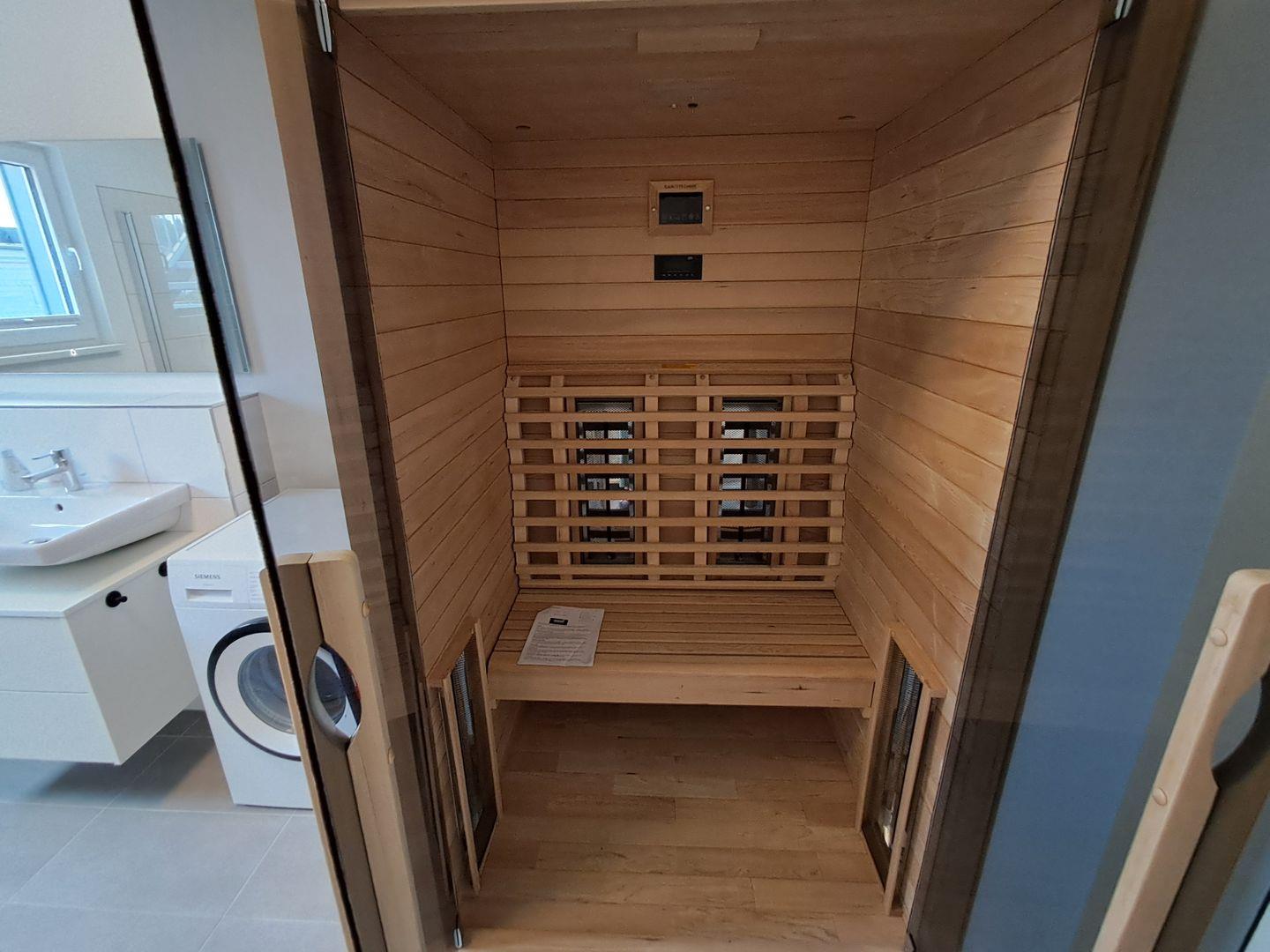 Die Wohnung bietet Schlafmöglichkeiten für bis zu vier Personen. Die moderne Einrichtung schafft eine gemütliche Atmosphäre und lädt zum Entspannen ein. Im Eingangsbereich finden Sie eine Garderobe, die Ihnen genügend Stauraum bietet. Das Badezimmer ist mit einer bodengleichen Dusche, einem Waschbecken, einem WC, einer Infrarotsauna und Waschmaschine ausgestattet. Hier können Sie sich nach einem aktiven Tag in der Natur erfrischen.