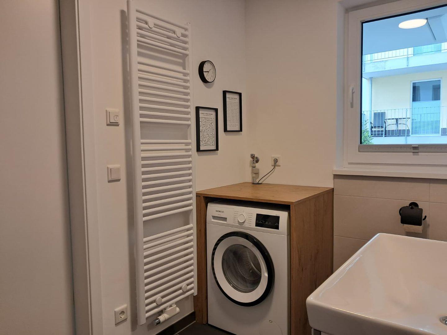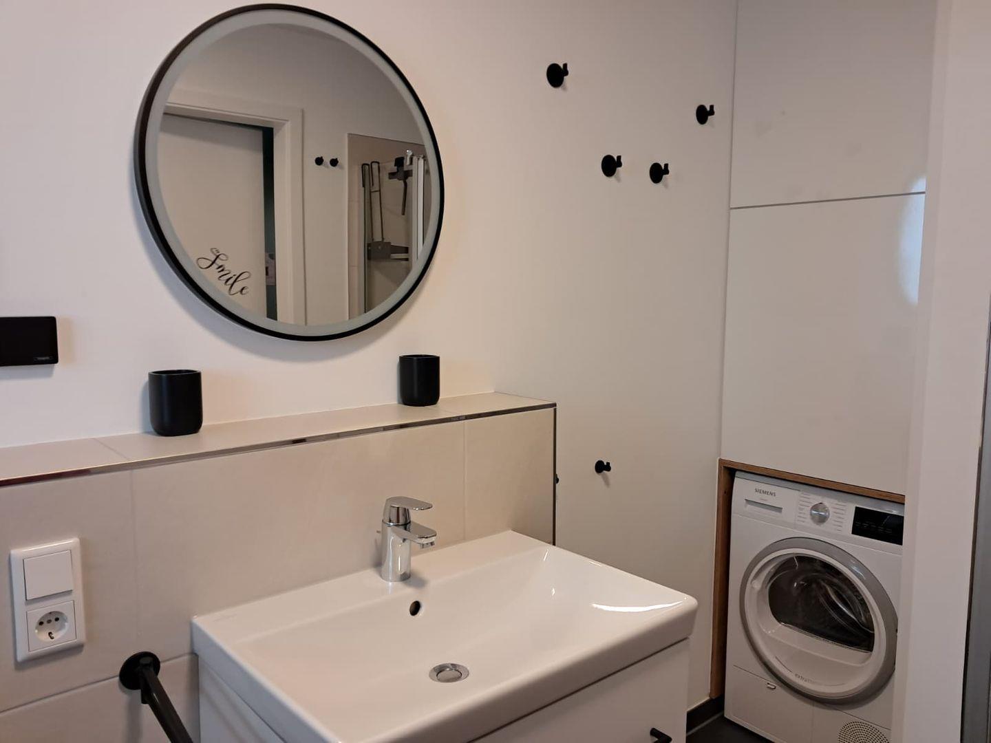 - Badezimmer: Ebenerdige Dusche und Waschmaschine