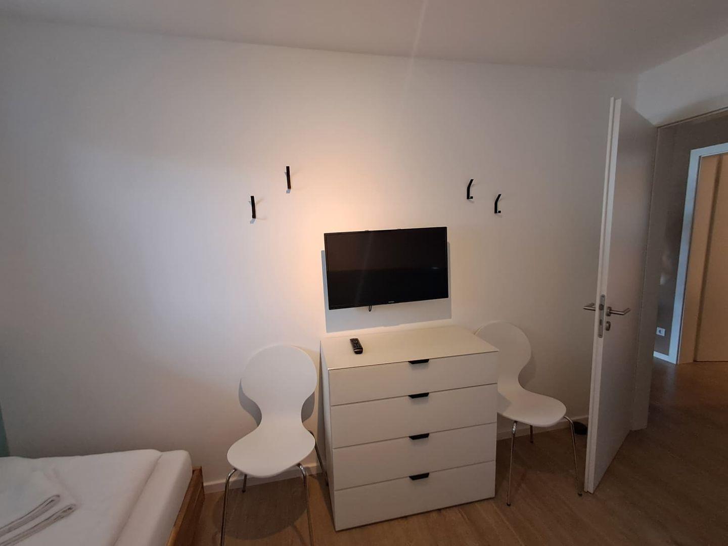 - Schlafzimmer 2: Zwei Einzelbetten und TV