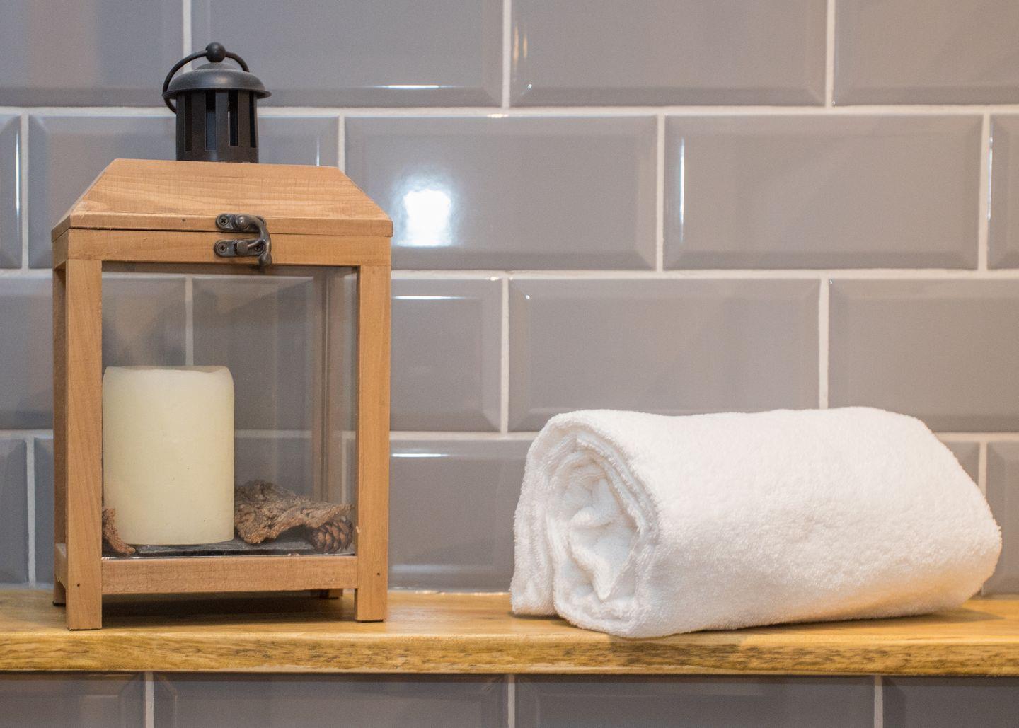 In jedem Zimmer befindet sich ein Infrarotheizkörper zum Beheizen.