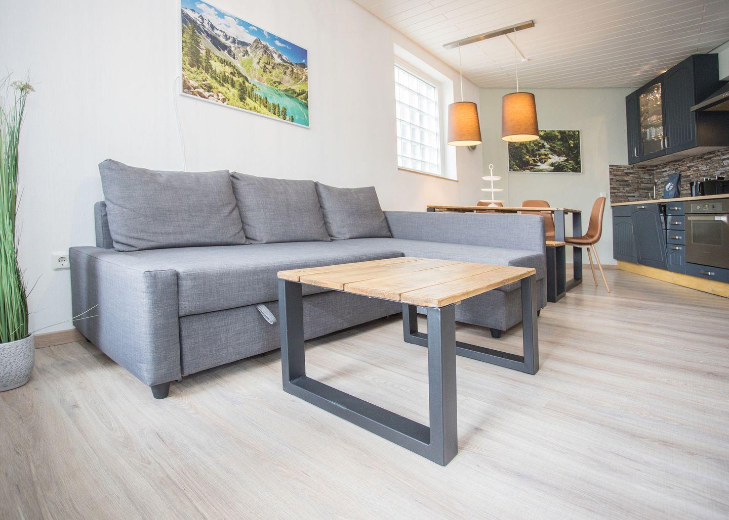 Diese Wohnung verfügt über eine Gesamtwohnfläche von ca. 45 m², die sich auf ein Wohn-Esszimmer mit offener Küche, ein Schlafzimmer mit einem 1,60 m breiten Boxspringbett, ein weiteres Schlafzimmer mit einem Hochbett - bei diesem ist die untere Etage 1,40 m und die obere Etage 1 m breit - (dieses Zimmer verfügt nicht über ein zu öffnendes Fenster!) ein Duschbad und einen überdachten Balkon verteilen. Im Wohnzimmer befindet sich auch ein Fernseher.