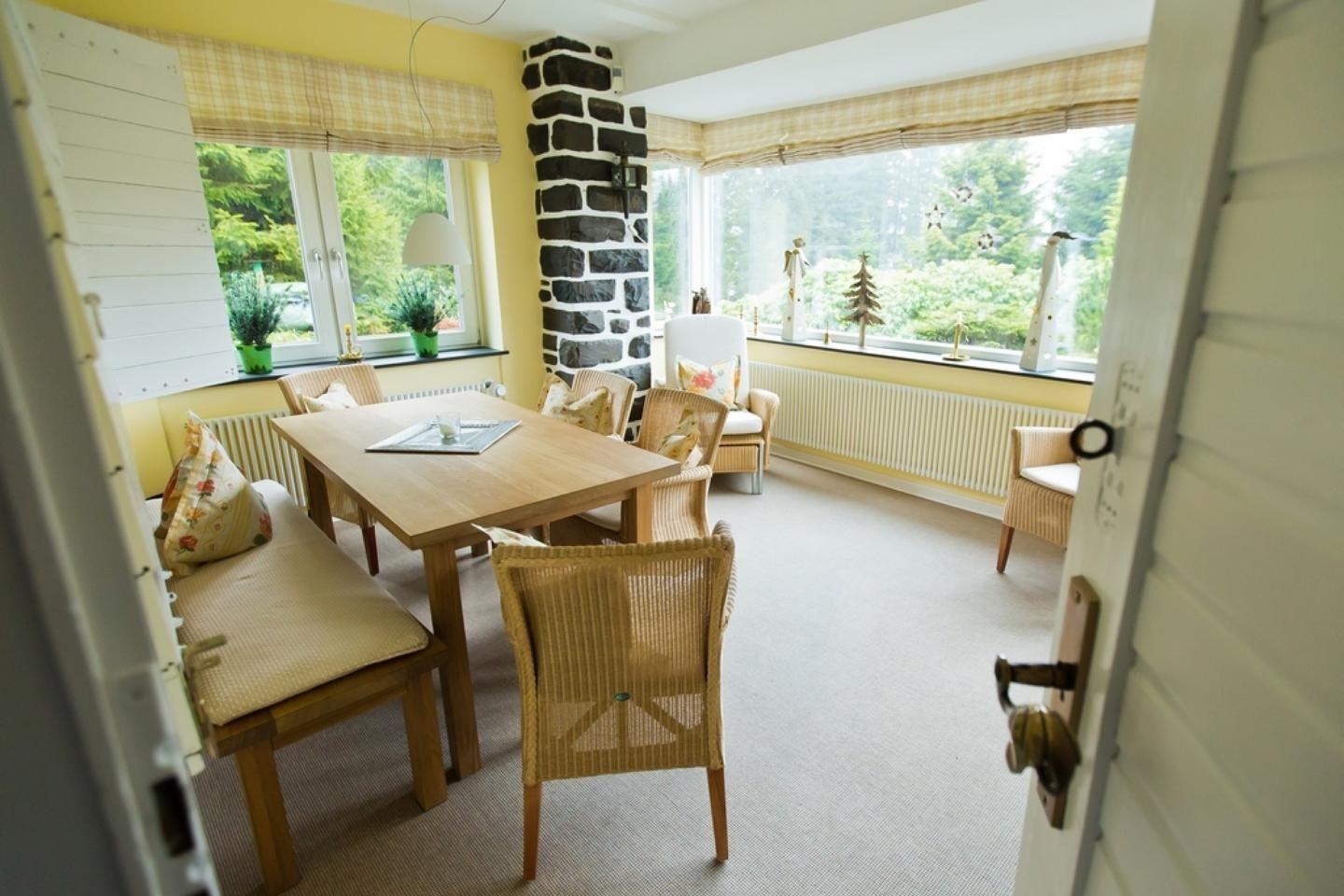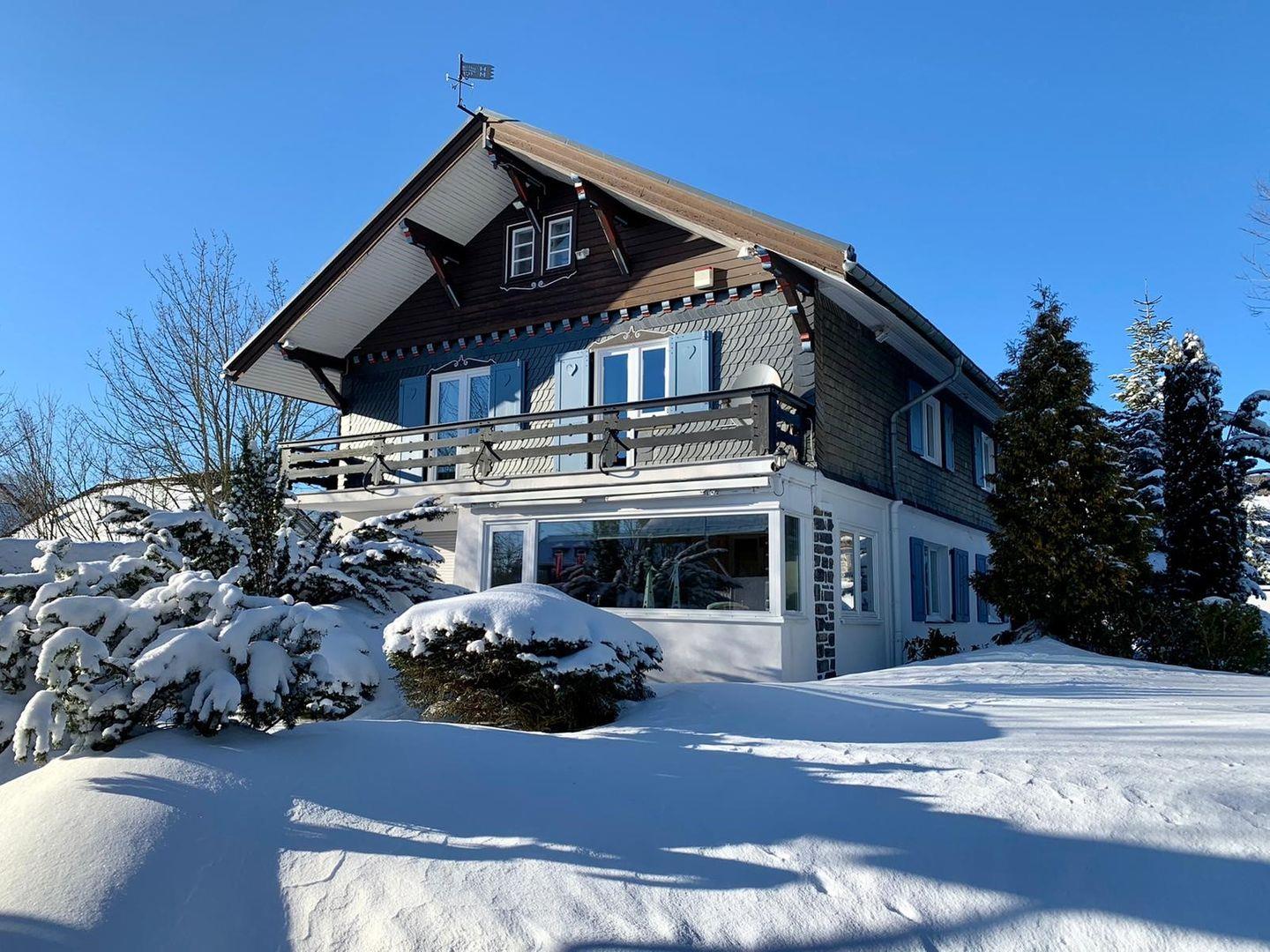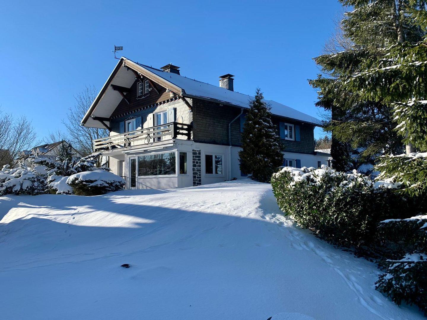 Dank der zentralen Lage direkt in Winterberg befinden sich Skilifte, Loipen, Restaurants, Einkaufsmöglichkeiten und der Zugang zum öffentlichen Nahverkehr in unmittelbarer Nähe – für einen abwechslungsreichen und komfortablen Aufenthalt ist somit gesorgt. Die Lage in den Bergen, auf 700 Meter über dem Meeresspiegel, begeistert mit einer reizvollen Aussicht auf die umgebende Landschaft, die entweder vom Wintergarten, vom Balkon, von der Terrasse oder aus dem gepflegten Garten mit Liegewiese genossen werden kann. Besonders hervorzuheben ist die unmittelbare Nähe zum Skigebiet: So findet sich der nächste Skilift direkt am Haus.