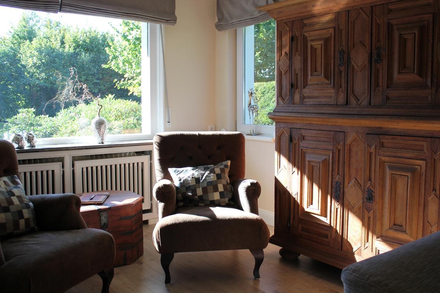 Weitere Ausstattungsdetails umfassen schnelle Internetverbindung (ab 25 MBit/s), WLAN im gesamten Haus, Telefon, privaten Parkplatz mit vier Stellplätzen und eine Ladestation für Elektrofahrzeuge. Die Heizung erfolgt über eine Zentralheizung. Elektronische Geräte sind auf dem neuesten Stand, sämtliche Schlafzimmer und das Wohnzimmer sind mit edlen Dielenböden versehen. Abgerundet wird das Angebot durch eine Sichtschutzverglasung für die Fenster, einen Ganzkörperspiegel, Garderoben, Kommoden und eine moderne Möblierung.