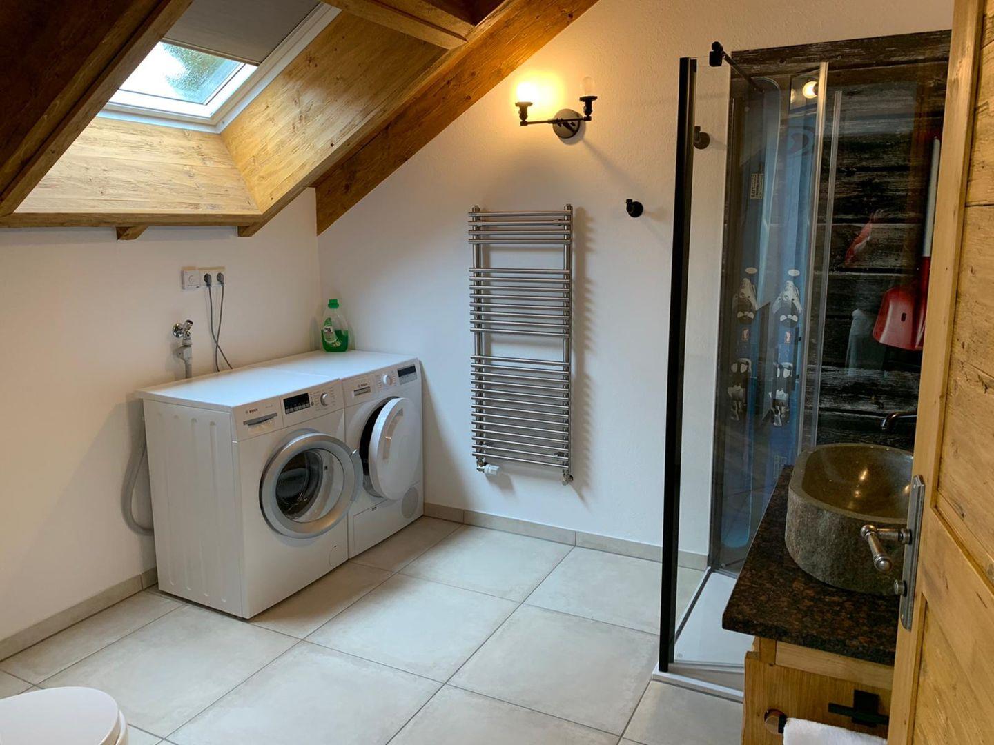 Das 500 m² große Grundstück bietet vielfältige Möglichkeiten zur Erholung an der frischen Luft. Vom Balkon und der möblierten Terrasse mit Markise sowie von der Liegewiese genießen Sie sowohl Garten- als auch Bergblick in naturnaher Lage. Ein Kohlegrill und Sonnenschirm stehen im Garten zur Verfügung und laden zu gemeinsamen Mahlzeiten im Freien ein. Für Fahrzeuge finden Sie direkt am Haus drei Privatparkplätze; die Anreise mit dem Auto wird empfohlen, wobei die hervorragende Anbindung an den öffentlichen Nahverkehr (250 m zur nächsten Haltestelle) auch spontane Ausflüge ohne Fahrzeug ermöglicht.