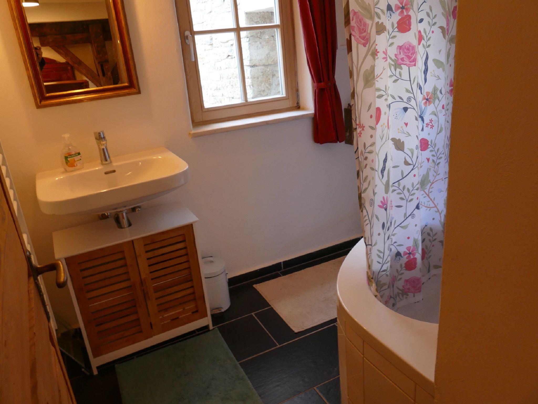 ALLGEMEIN: Erdgeschosswohnung mit Ess-/Wohnzimmer, Schlafzimmer, Schlafkoje, Bad und separatem WC. Stilvoll und hochwertig eingerichtet. Offenes Fachwerk und Bruchsteinwand. Freies WLAN. Parkplatz. Gartensitzplatz mit Grill. Für max. 4 Personen + Kleinkind. 2 weitere Personen auf Anfrage.