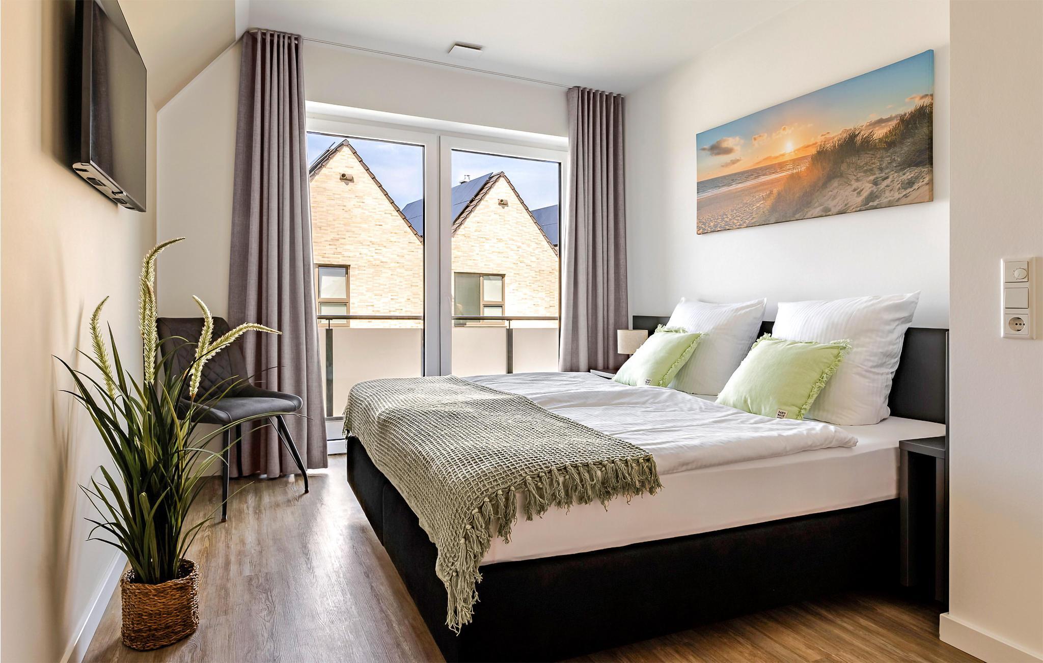 I jeres sommerhus kan I forvente en høj komfort i den landlige stil. Her møder moderne arkitektur elegant indretning og beherskede farver, så I kan slappe af i en elegant atmosfære. Nyd solnedgangen fra jeres egen terrasse eller balkon eller dvæle i de rummelige værelser. Efter en dejlig dag på stranden eller en tur i området kan I slappe af i hotellets sauna eller brænde jer selv ud med et spil bordfodbold inden middagen sammen. En grund tilhørende hvert af de forskudte rækkehuse gør "An den Wehlen" til et tilflugtssted uden kompromiser.