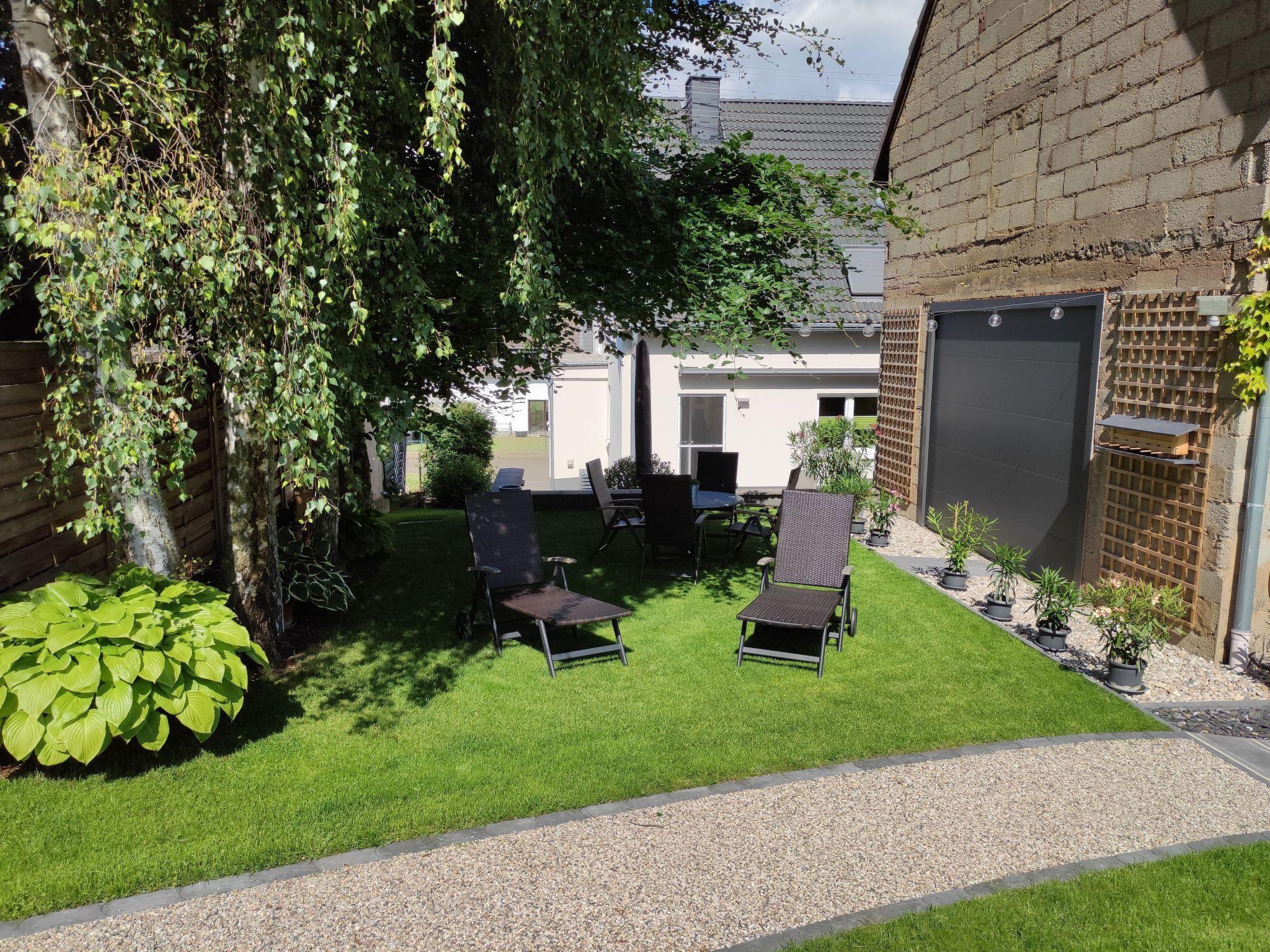 The outdoor area of our house invites you to relax on a cosy terrace and an idyllic, peaceful lawn. Here you can enjoy the sunny days, read a book in peace or simply unwind.