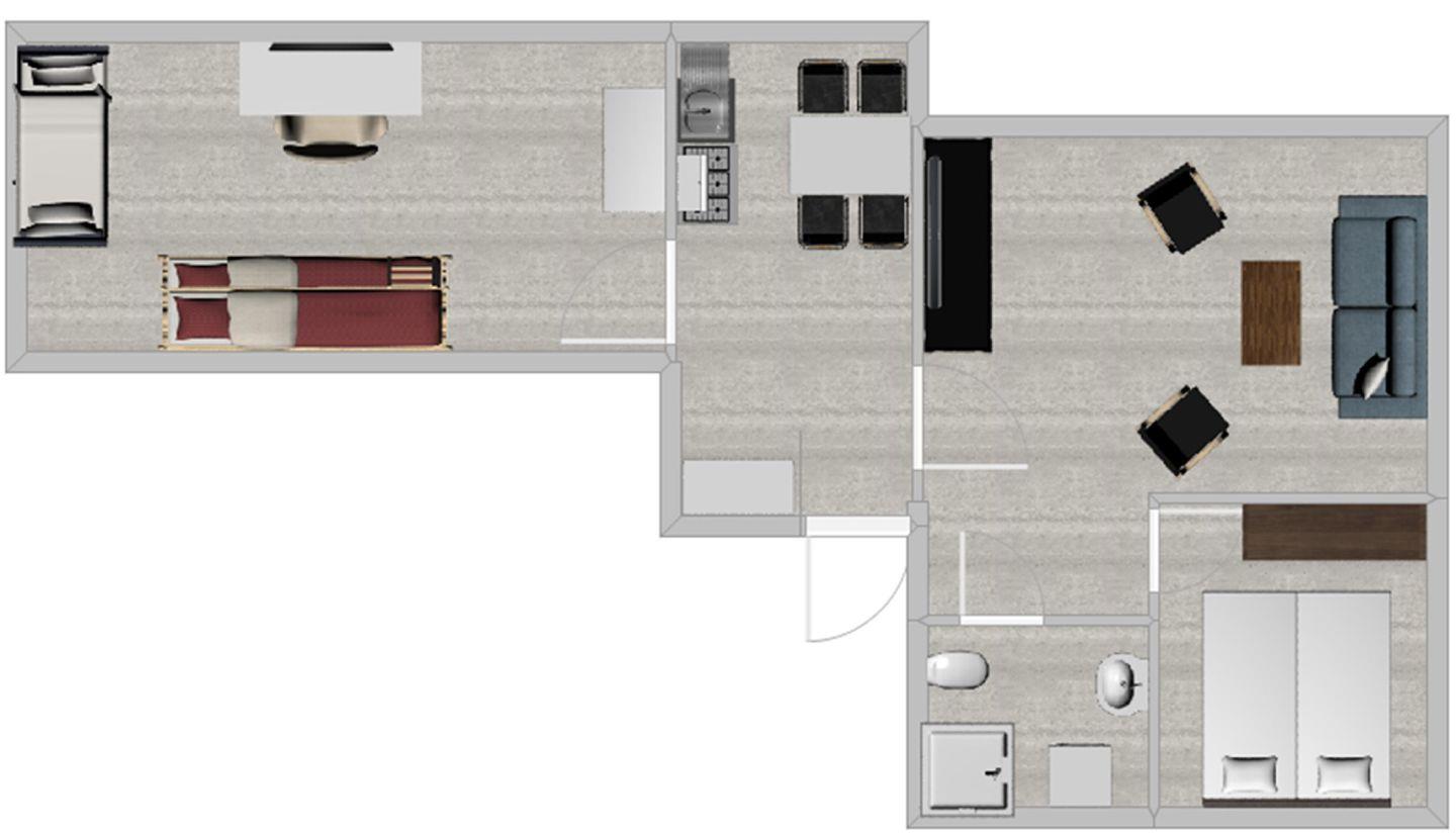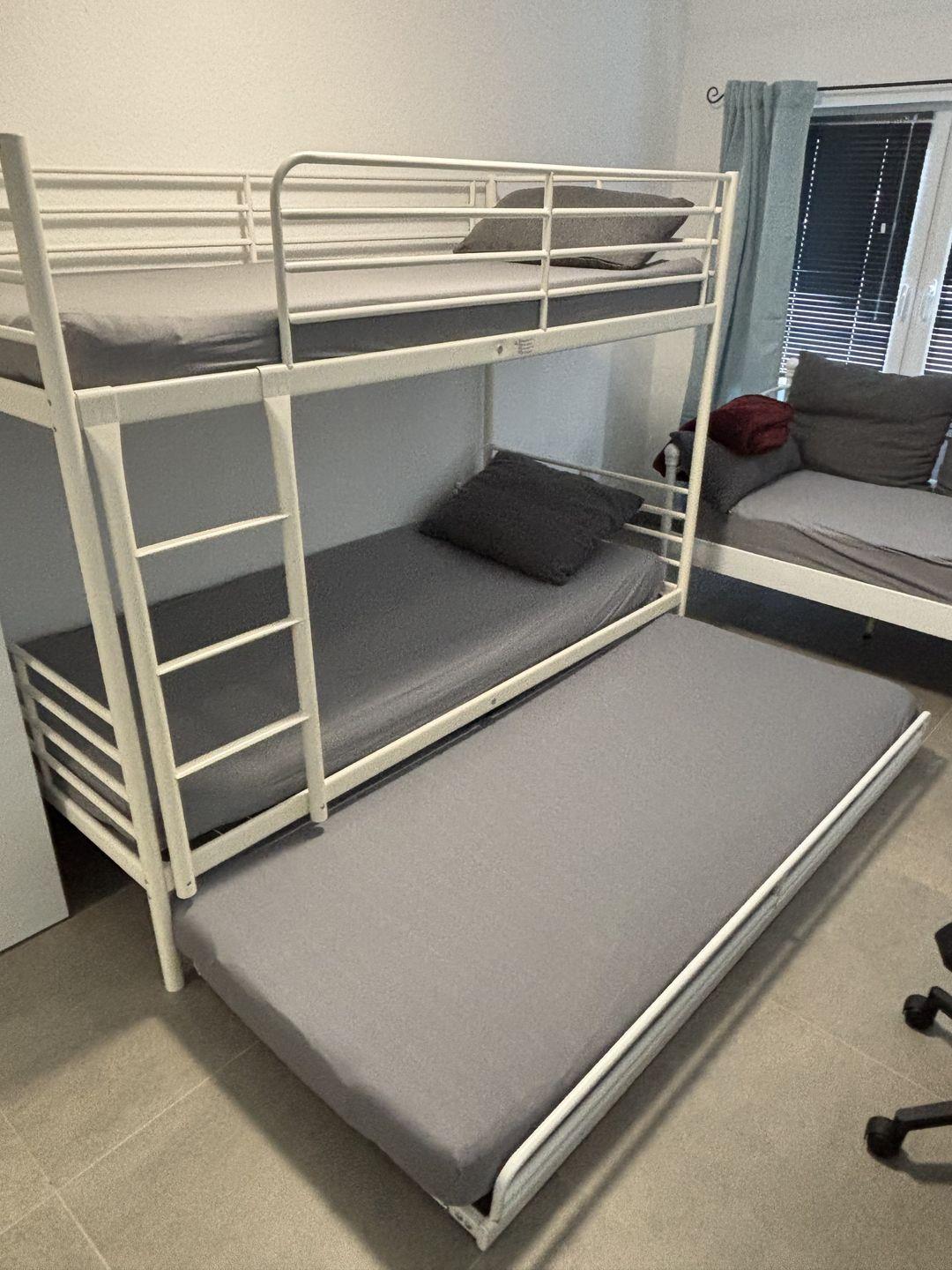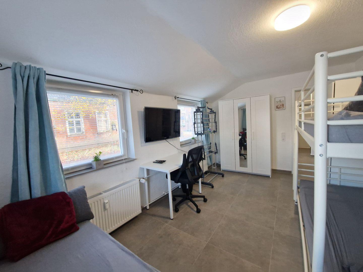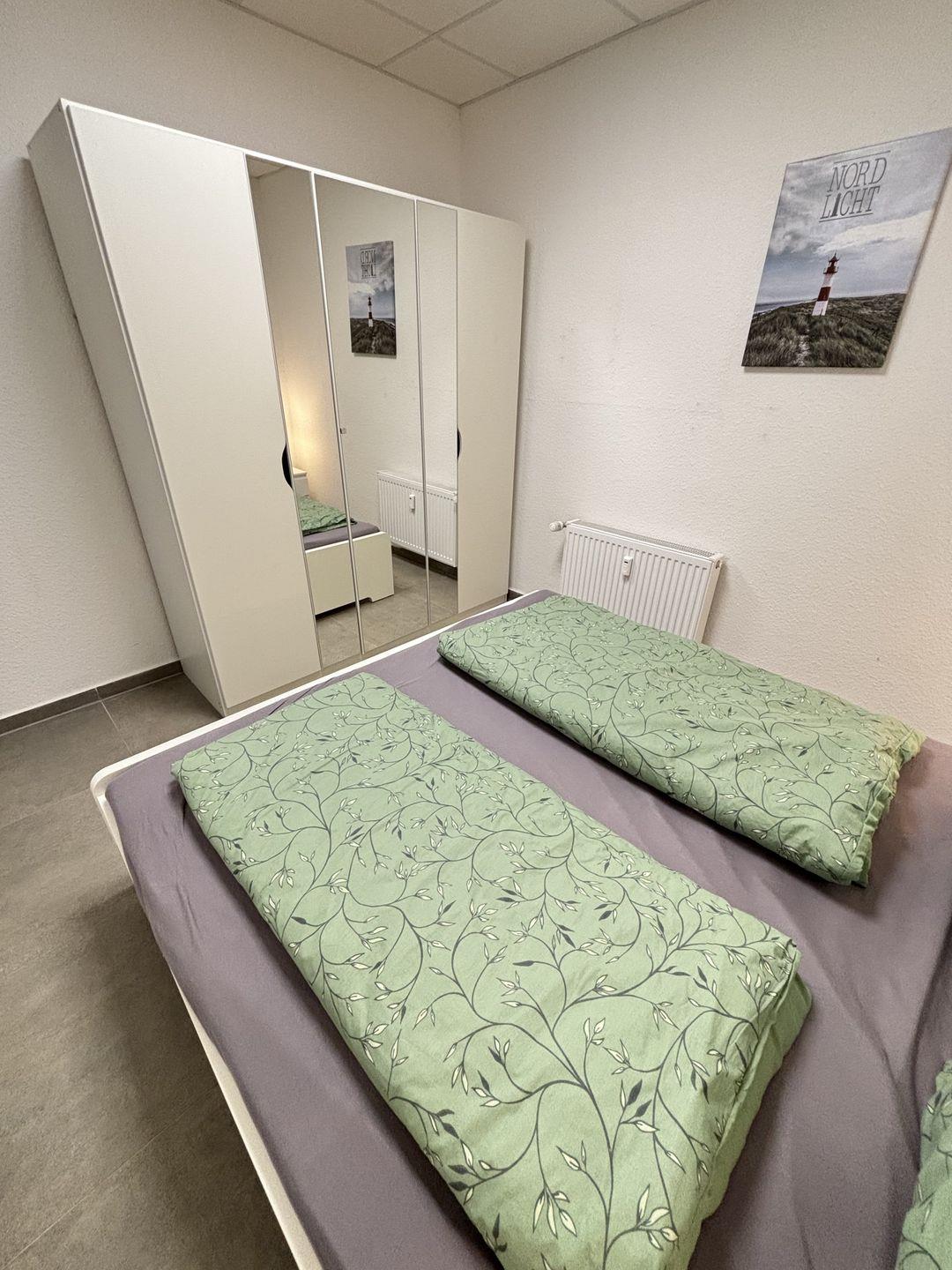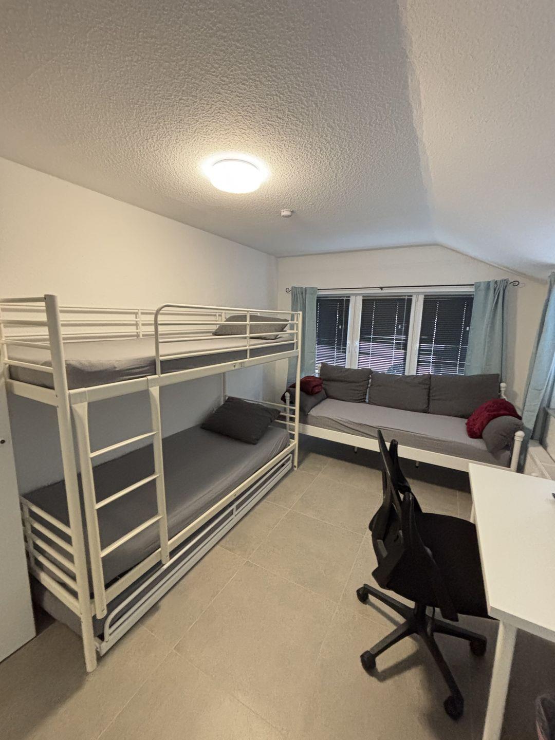 Zwei separate Schlafzimmer sorgen für einen erholsamen Aufenthalt. Das Kinderzimmer mit Hochbett und eigenem Fernseher dient als Wohlfühloase für alle Kinder. Die Unterkunft stellt auf Wunsch gerne ein Babybett sowie einen Kinderhochstuhl bereit, was die Ferienwohnung besonders familienfreundlich macht. Das Badezimmer ist mit einer bodengleichen Dusche, WC, Waschbecken, Haartrockner und Spiegel ausgestattet. Für längere Aufenthalte steht eine Waschmaschine zur Eigennutzung zur Verfügung.