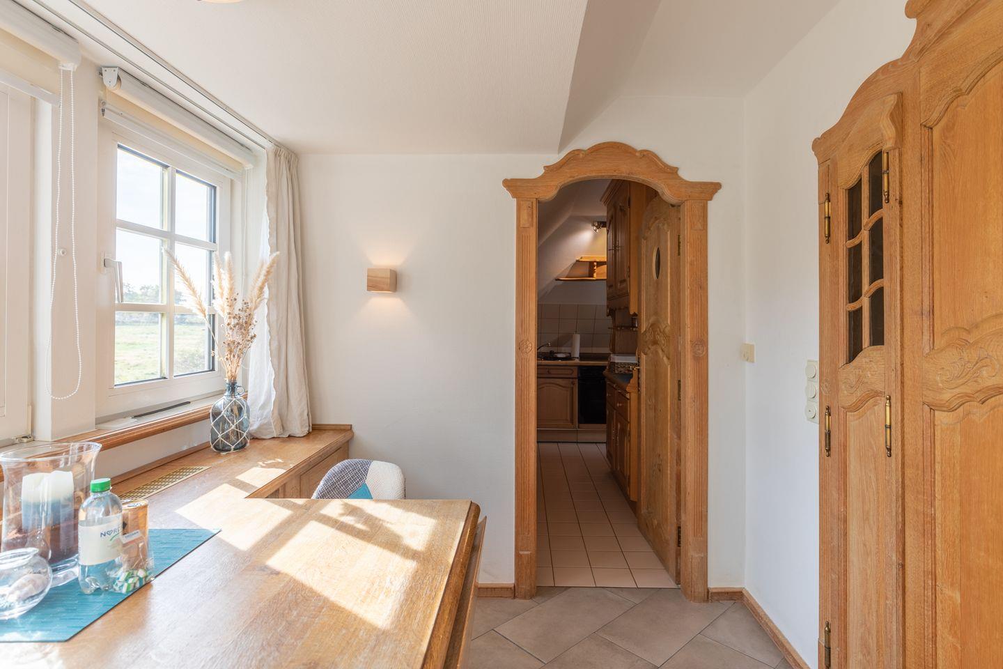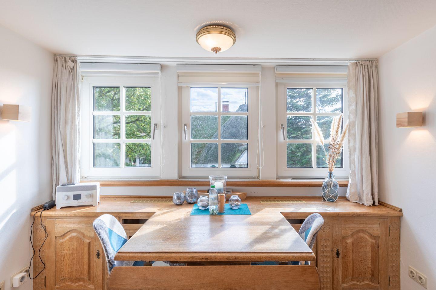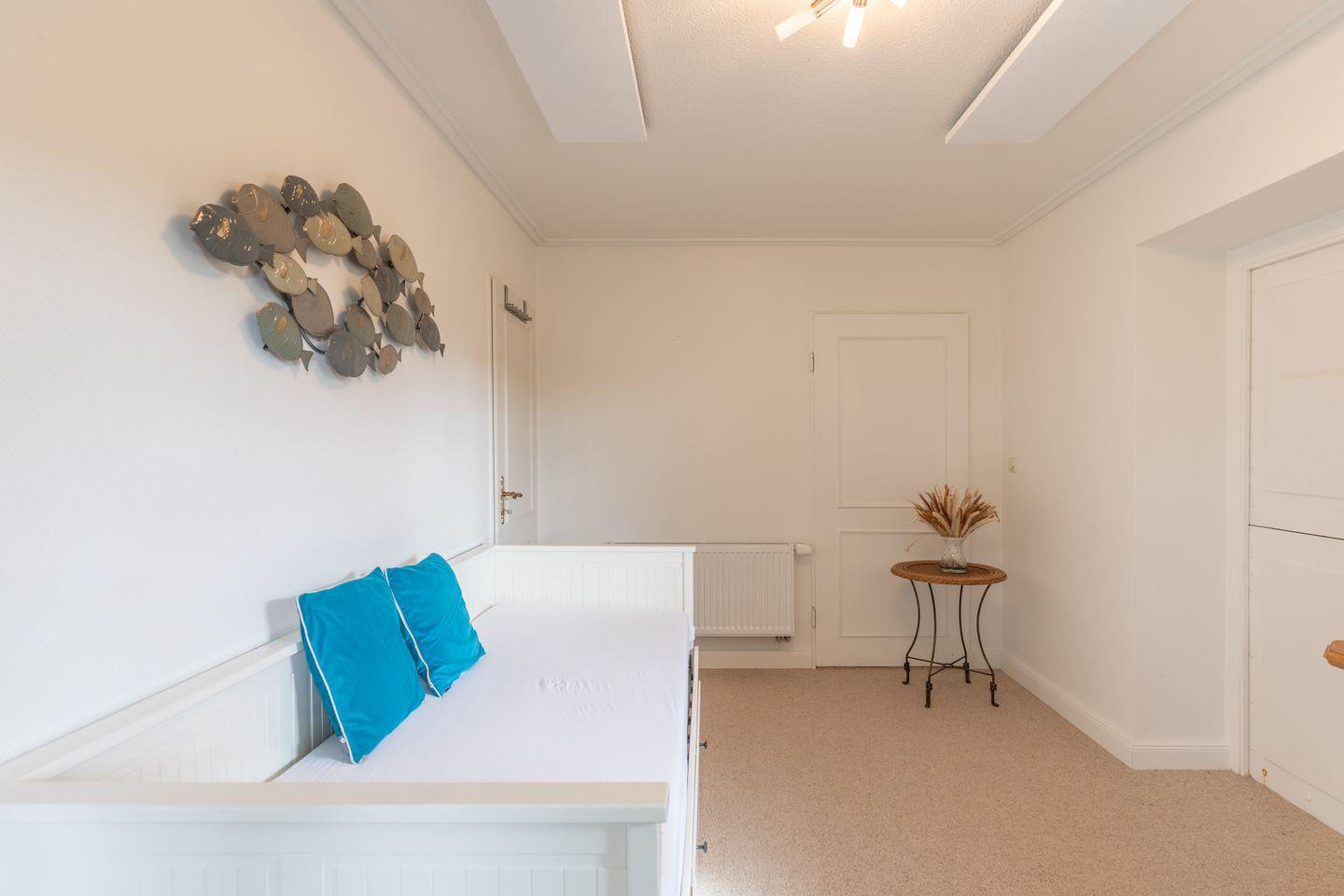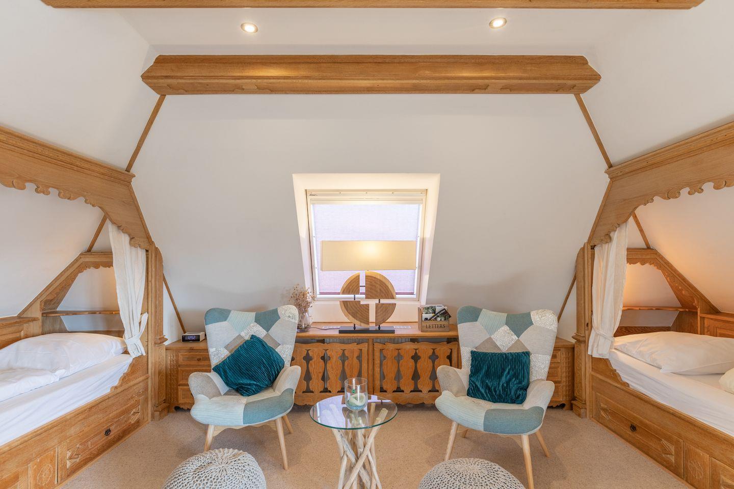 Das Apartment für 2+ Personen erstreckt sich über 2 Etagen: im Erdgeschoss finden Sie eine große Sauna und eine Dusche. Über eine geschlossene Treppe gelangen Sie in den Wohnbereich mit zwei Alkovenbetten (90 x 200) und einem Sitzbereich mit TV. Die separte Küche bietet Ihnen einen Cerankochfeld, einen Backofen, Nespresso Maschine und Kaffeemaschine (Filtergröße 4). Im Erdgeschoss befindet sich noch ein "Ausweich-Schlafzimmer" für Kinder.