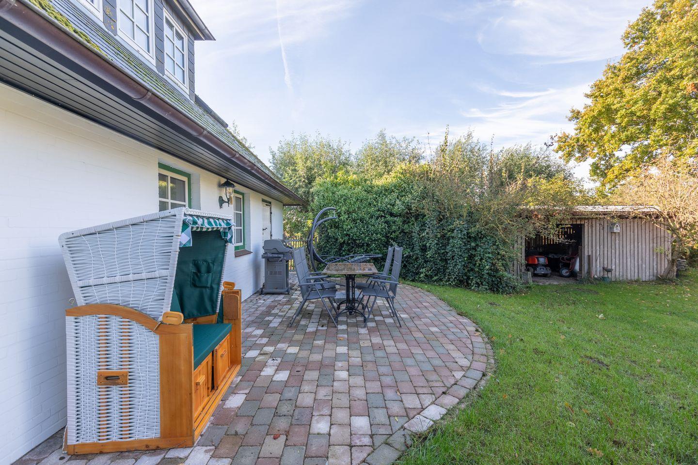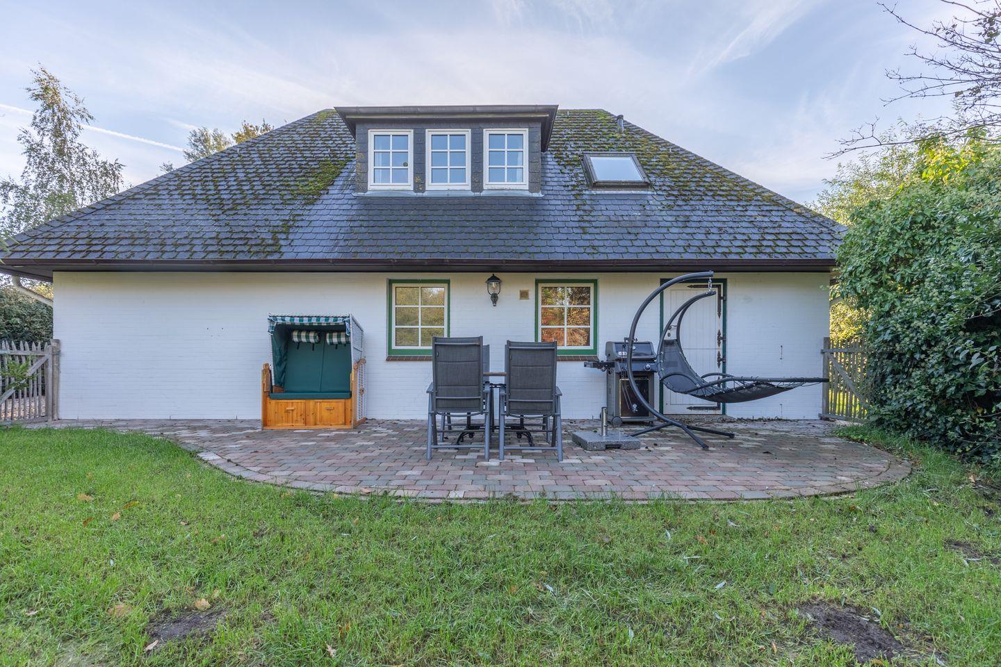 Auf der eingezäunten Terrasse können Sie Ihren Tag gemütlich im Strandkorb ausklingen lassen.