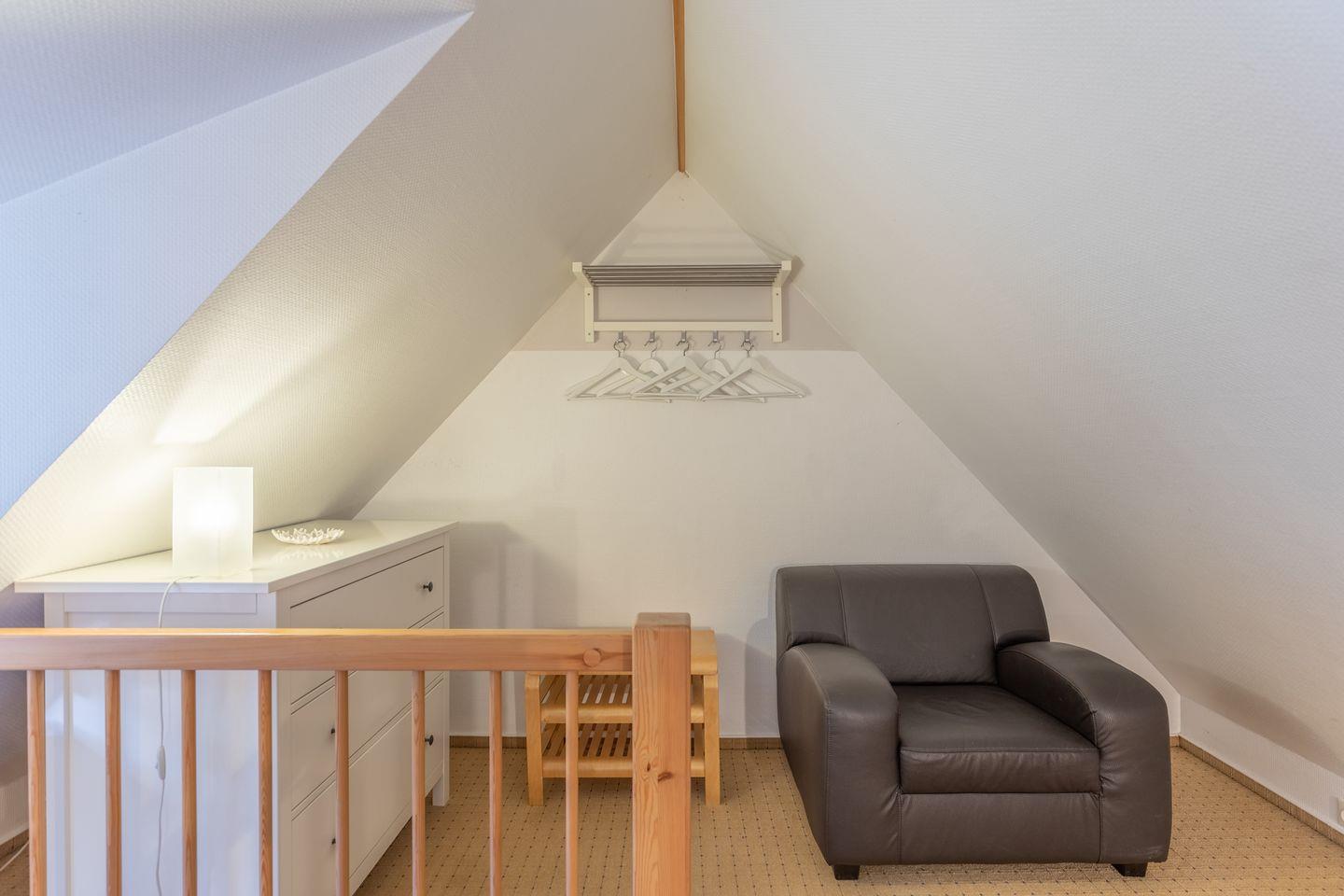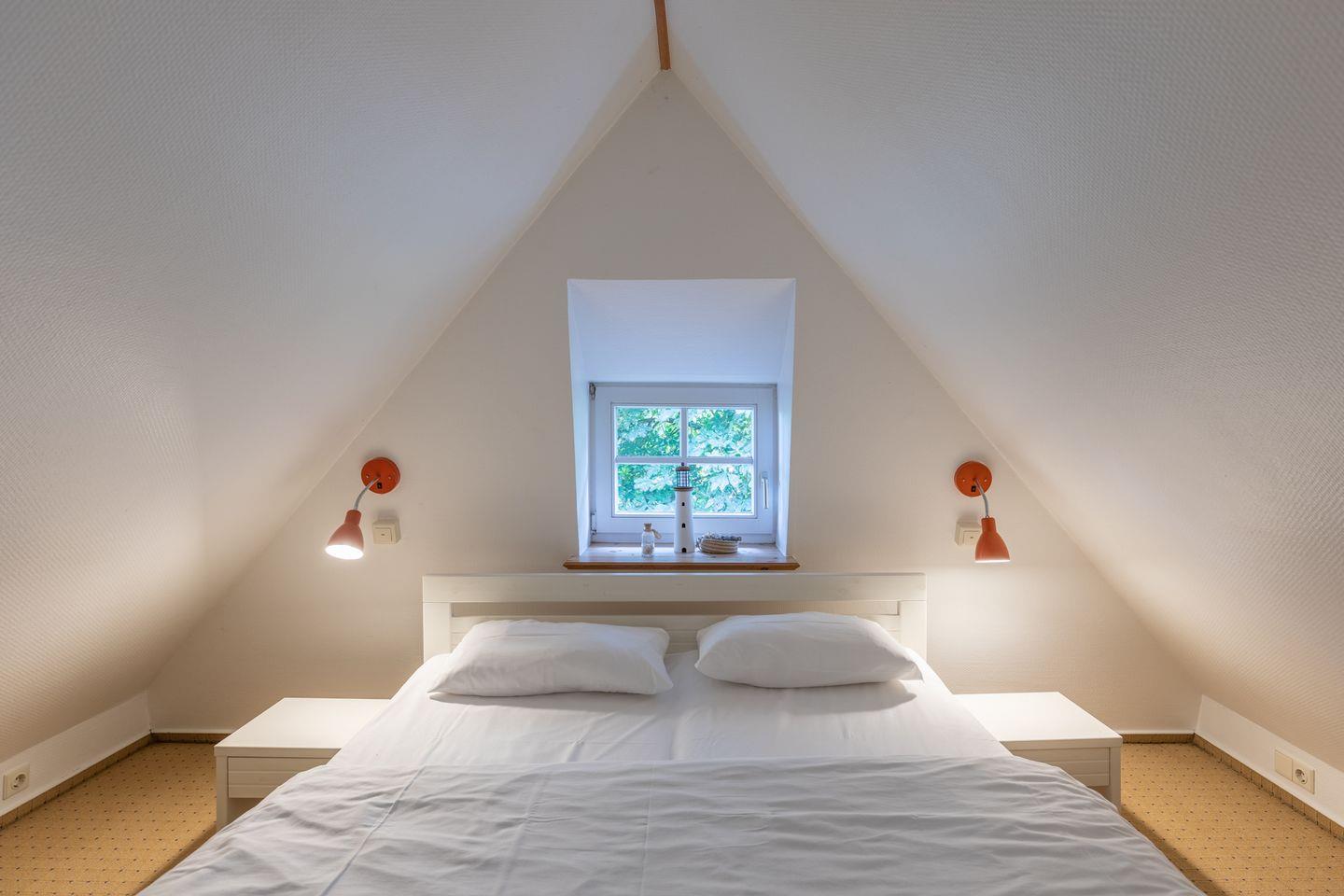 Über eine offene Treppe erreichen Sie das Schlafzimmer im Obergeschoss mit einem Doppelbett (180 x 200).