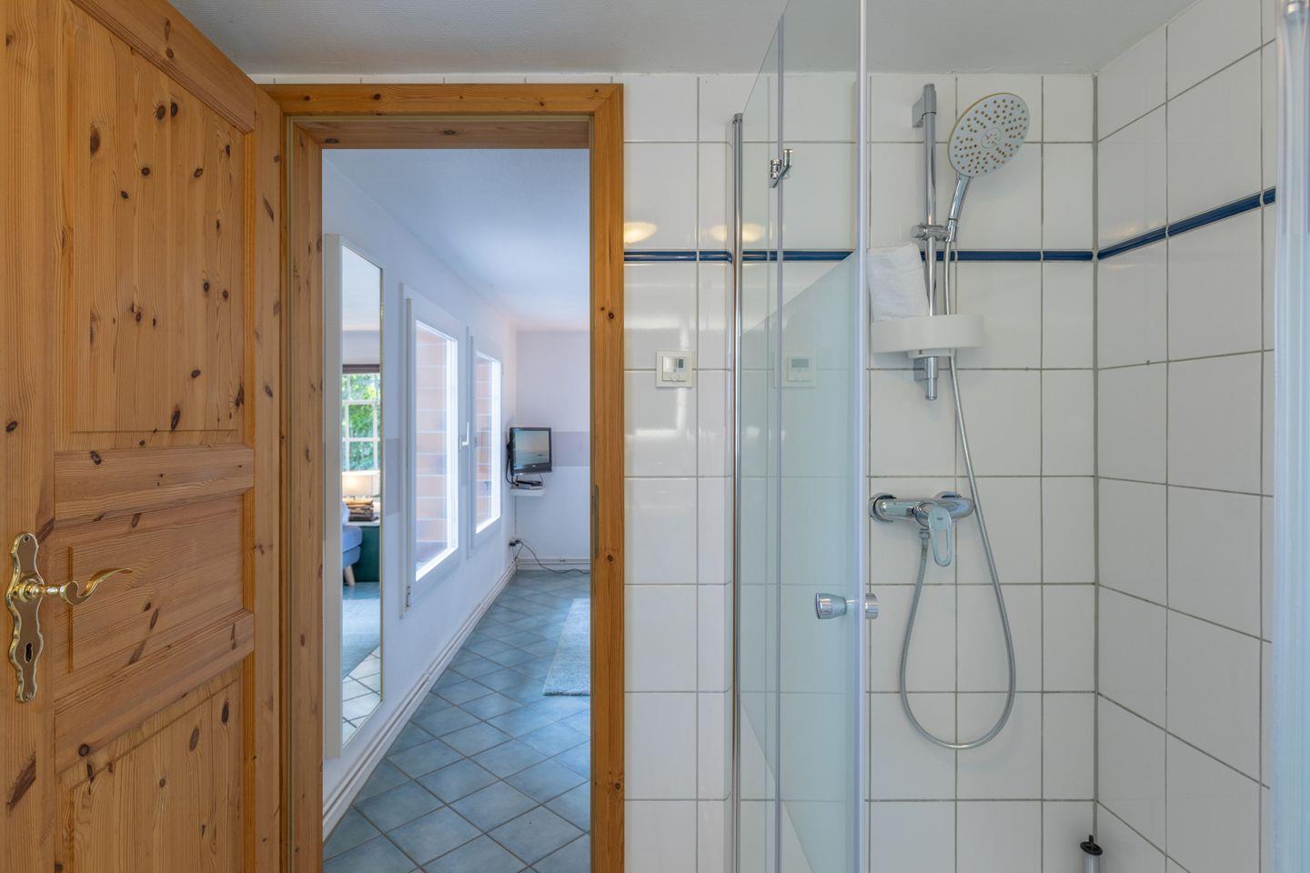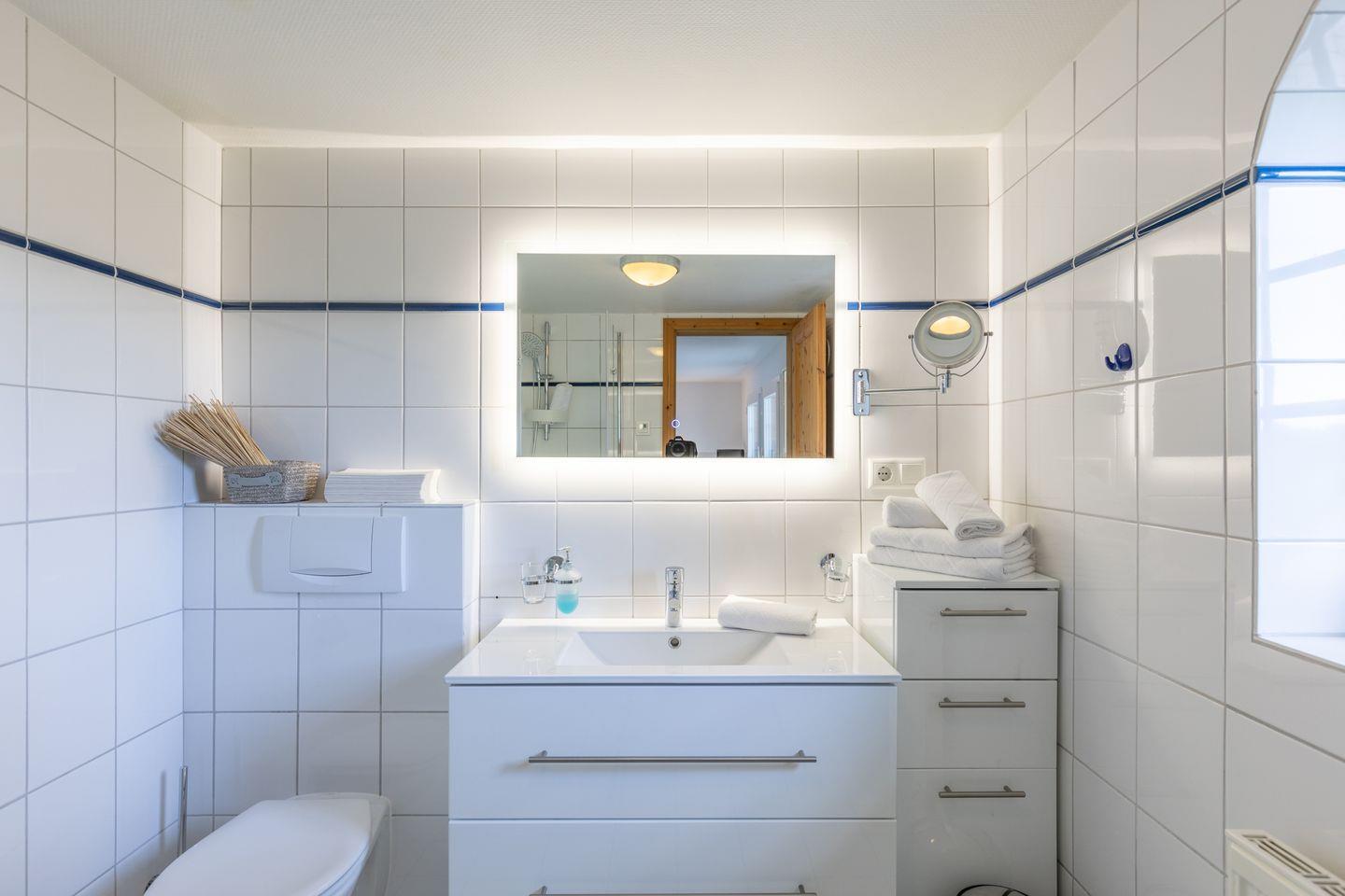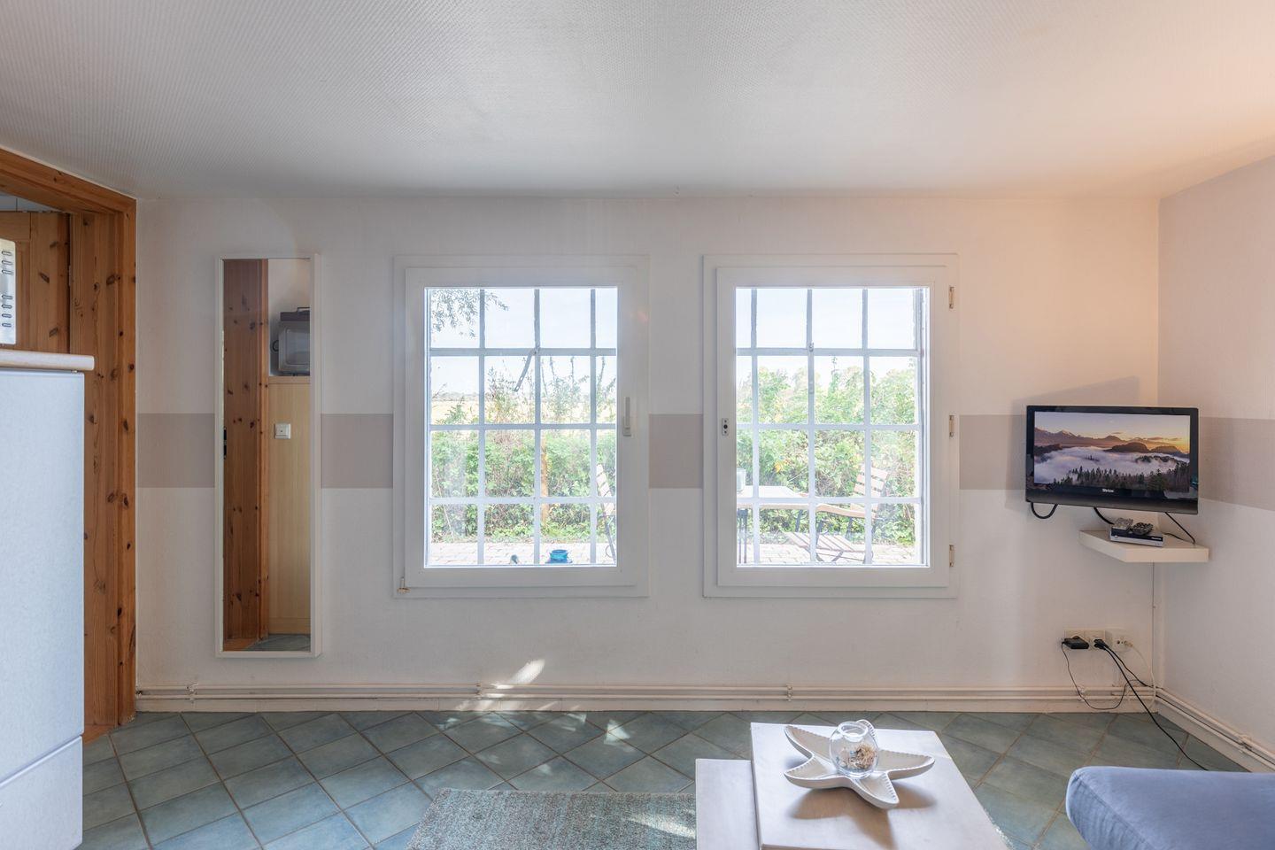 Das Apartment für zwei Personen erstreckt sich über 2 Etagen: im großen Wohnbereich finden Sie eine gemütliche Sitzecke mit Sofa, Flachbildschirm. Die offene Küchenzeile ist mit einem 2-Platten-Herd, einer Mikrowelle, Nespresso Maschine, Kaffeemaschine (Filtergröße 4) ausgestattet. Das Duschbad im Erdgeschoss rundet das Bild ab.