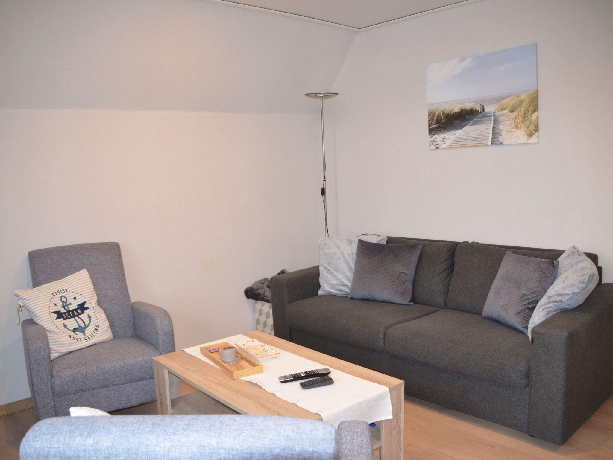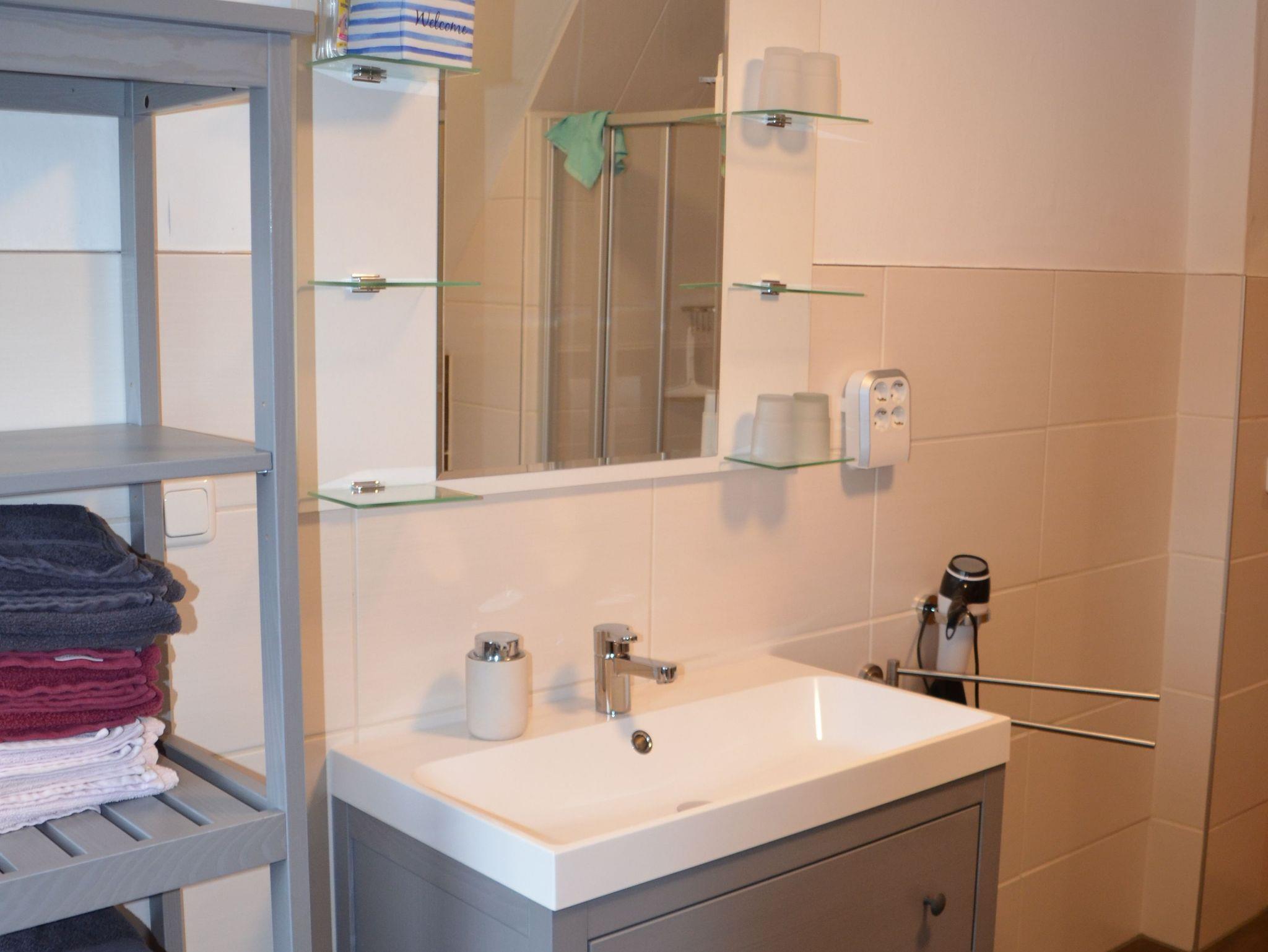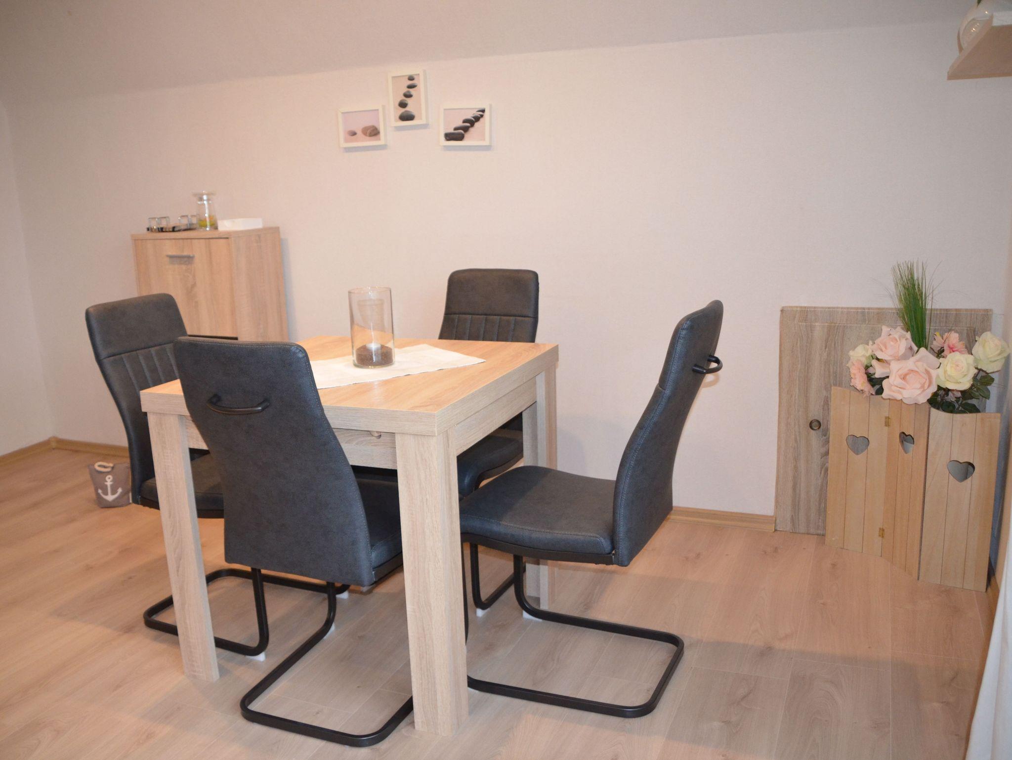Moderne Ferienwohnung, ausgestattet mit Laminat und Fliese. 1 OG. Treppe, Nichtraucherwohnung, Terrasse.