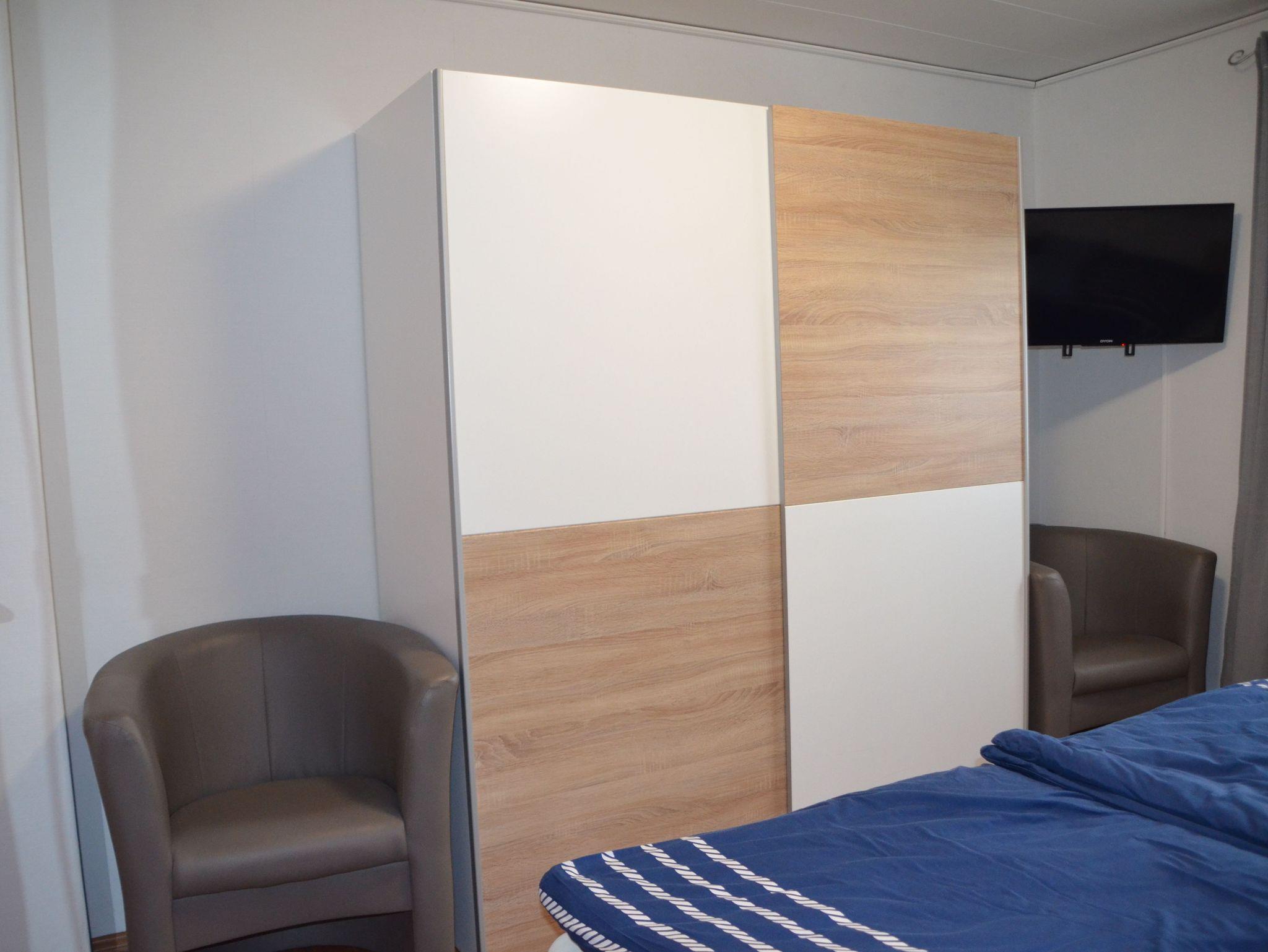 Bett: 1,80 m x 2,00 m , Schlafcouch 1,40 m x 2,00 m.