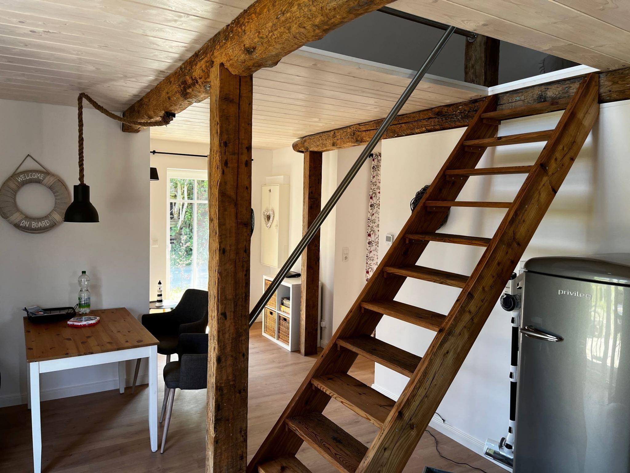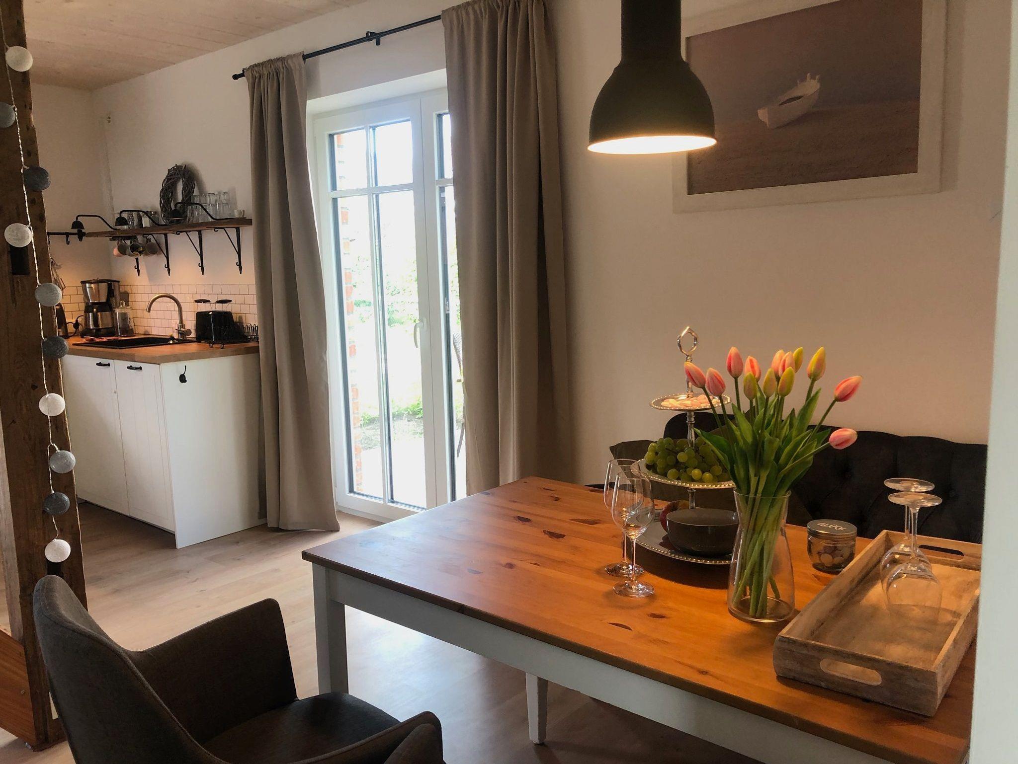 Gemütliches Ferienhaus für 2 Personen. Das Ferienhaus (68qm), verfügt über 1 Schlafzimmer im Obergeschoss mit einem 1,8x2m Doppelbett. Die Eckgarnitur im Wohnzimmer kann umgebaut werden, so dass dort noch zwei Kinder oder ein Erwachsener schlafen können. Die komplett ausgestattete Küche verfügt über einen Backofen, Kühlschrank, Geschirrspüler, Küchenmaschine mit Kochfunktion, Wasserkocher sowie Kaffeemaschine und Toaster. Es gibt eine schöne Holzterrasse mit Terrassenmöbeln einem Grill, Sonnenschirm und zwei Sonnenliegen.