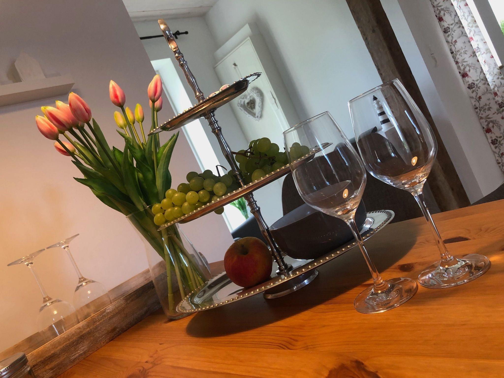 Ein Kanu steht Ihnen zur Verfügung, womit Sie auf dem gegenüberliegenden Fleth zwischen Wiesen und Feldern paddeln können. An den Apfelbäumen hinter dem Haus können Sie sich zur Erntezeit gerne bedienen.