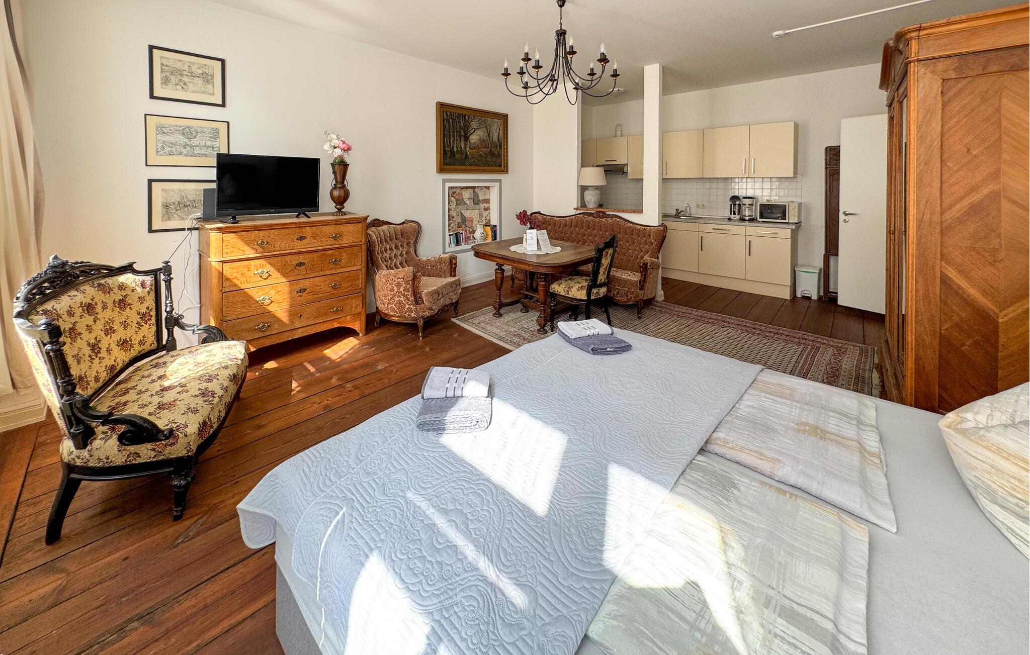 gå gennem Wismars imponerende gamle bydel, se den storslåede gotiske murstensarkitektur, og nyd den maritime stemning i den gamle havn. Historiske bygninger, hyggelige gyder og charmerende caféer lægger op til hyggestunder. Kun få minutter væk lokker fine sandstrande, frisk luft og den beroligende lyd af bølgerne. Uanset om I solbader, bader eller går lange gåture på stranden, kan I slappe af på enhver sæson.