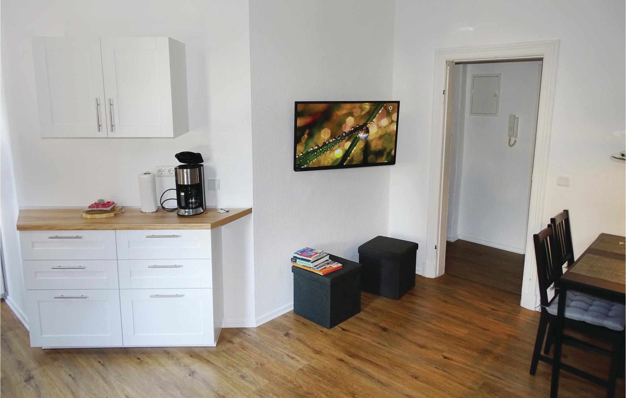 Bo i den skønne by Wismar, i denne ferielejlighed der ligger på første sal i et gammelt byhus. I stuen er der et lille køkkenhjørne der er praktisk udstyret med glaskeramisk komfur, emhætte og mikroovn, ligesom her naturligvis er et tv som I kan slappe af foran og se en god film.