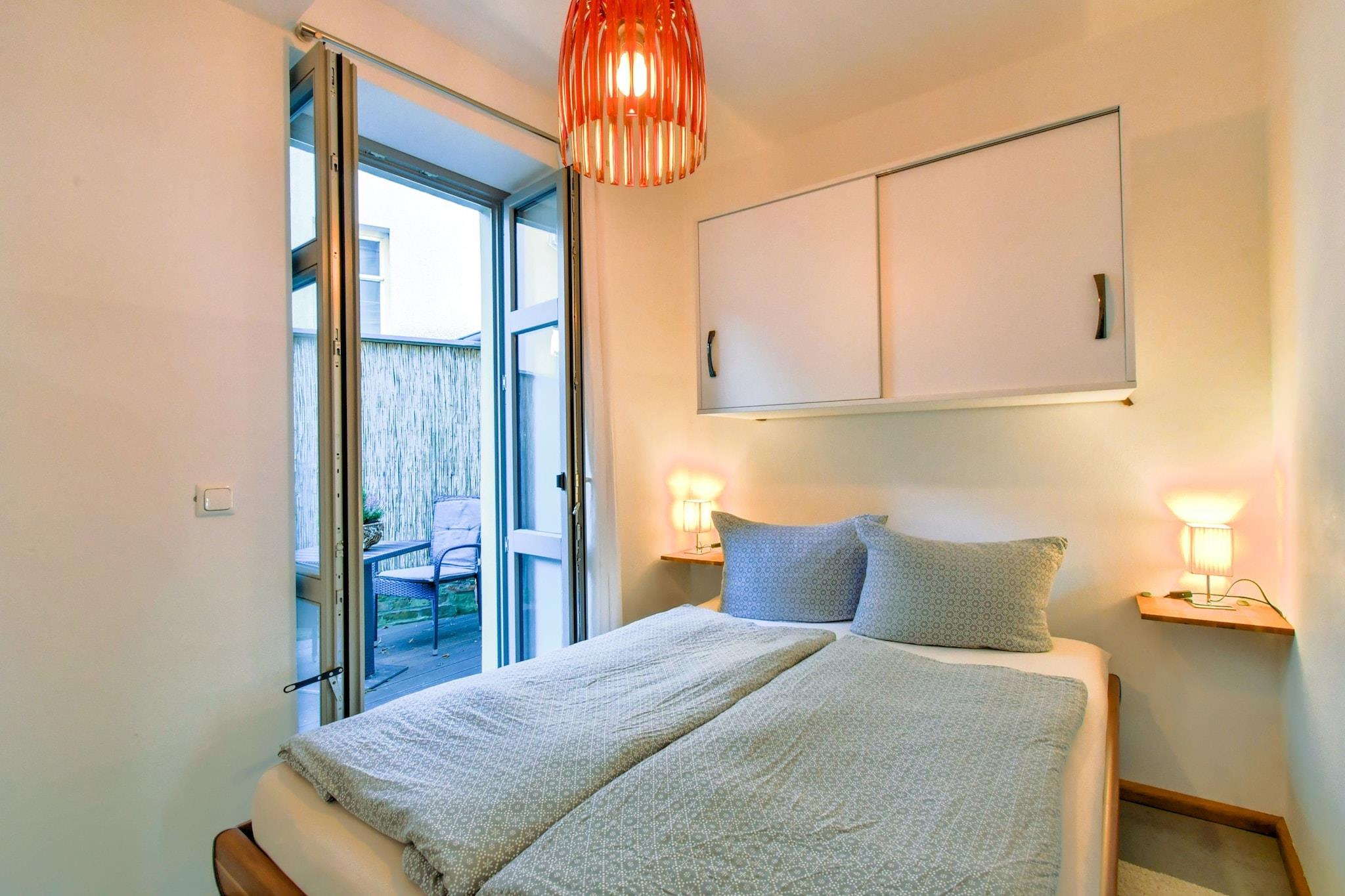 Denne hyggelige ferielejlighed for tre er beliggende i en historisk gammel byvilla i Wismar, kun få skridt fra havnen og hjertet af det UNESCO-listede bycentrum. Med et moderne køkken, komfortabelt opholdsrum og et soveværelse med udsigt over den ikoniske St. Nicholas-kirke er det den perfekte base for at udforske Østersøkysten. Gæsterne kan nyde WiFi, inkluderede hjælpemidler og fredelige omgivelser, der blander arv med komfort. Wismars Altstadt er et skattekammer af gotisk murstensarkitektur, fra de tårnhøje St. Nicholas- og St. Mary-kirker til det udsmykkede Wasserkunst-springvand på markedspladsen. Gå ikke glip af Schabbellhaus Byhistoriske Museum, som tilbyder et fascinerende kig ind i Hanseforbundets arv. For et maritimt præg, slentre den Gamle Hansa Havn eller besøg Museumsschiff Poeler Kogge Wismera, en kopi af et middelalderligt handelsskib. Når det er tid til at spise, leverer Wismar. Nyd smagfuldt indisk køkken på Yogi Indisch, frisk fisk og skaldyr med udsigt over havnen på Oberdeck eller solid østrigsk mad på Joseph Wiener Wirtshaus. For en afslappet caféstemning byder Kai Bar Cafe på hyggelige siddepladser og en fantastisk udsigt over vandet. Uanset om du udforsker brostensbelagte gader eller nyder lokale smagsoplevelser, tilbyder denne lejlighed en varm velkomst i hjertet af Wismar.