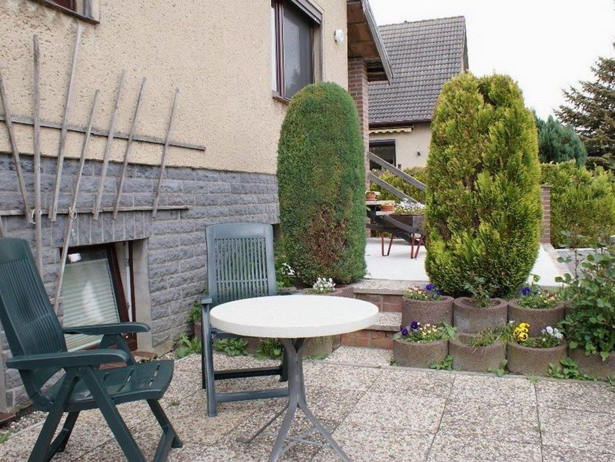 Die Ferienwohnung ist eine Souterrainwohnung und besteht aus einem Kombizimmer (Wohn-/ Schlafraum) mit einer kleinen Essecke. Die Wohnung hat einen separaten Eingang zum Flur, von dem aus Sie ins Bad, in die Küche und in das Zimmer gelangen. Zwei Korbsessel dienen als gemütliche Fernsehsitze.