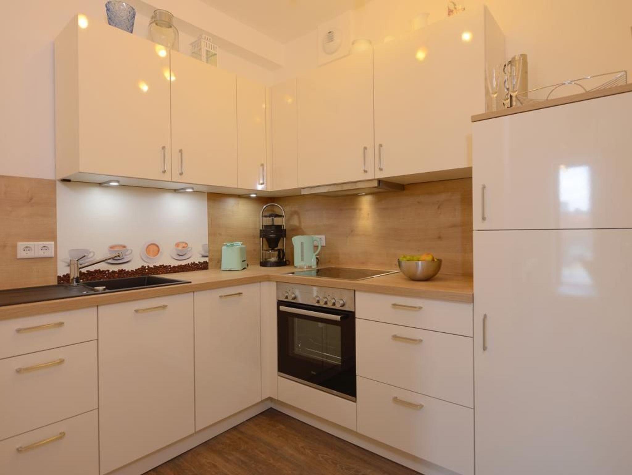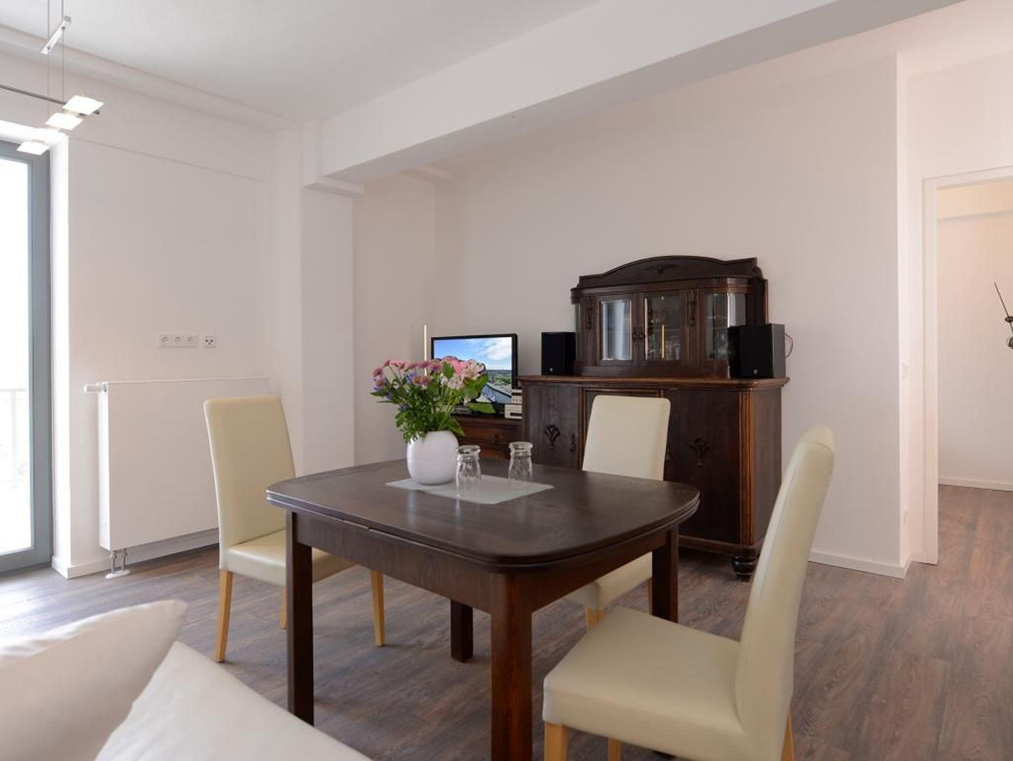 Das stilvolle 2-Zimmer-Appartement befindet sich im 1. Obergeschoss mit Lage in Richtung Altstadt. Mit seinen 64m² bietet diese exklusive Ferienwohnung ausreichend Platz für 2 Personen. Sie werden von einem hellen Wohnbereich mit Fernseher empfangen von dem Sie direkten Zugang auf den Balkon haben. Die separate Küche bietet jeglichen Komfort und ist komplett ausgestattet ( u.a. Geschirrspüler, Mikrowelle, Kühlschrank, Kaffeemaschine, Wasserkocher). Das moderne Schlafzimmer sorgt für erholsamen Schlaf. Des Weiteren steht Ihnen einen hochwertig eingerichtetes Duschbad und kostenfreies WLAN zur Verfügung. Bei Anreise ist ein Bett für 2 Personen bezogen und Handtücher liegen für Sie bereit. In unmittelbarer Nähe sind öffentliche Parkplätze vorhanden.