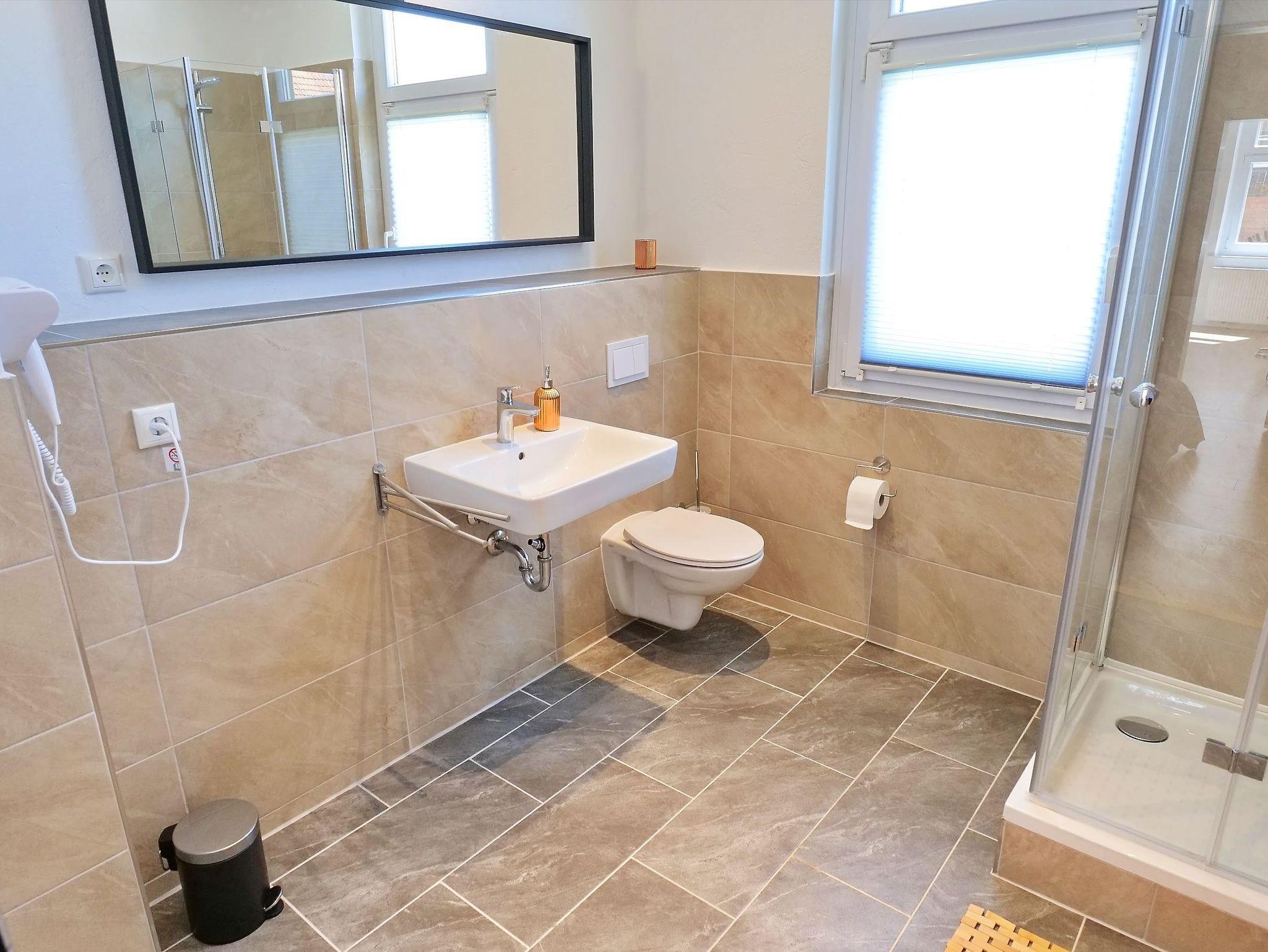 - Duschbad mit Dusche, WC, Spiegel und Ablage