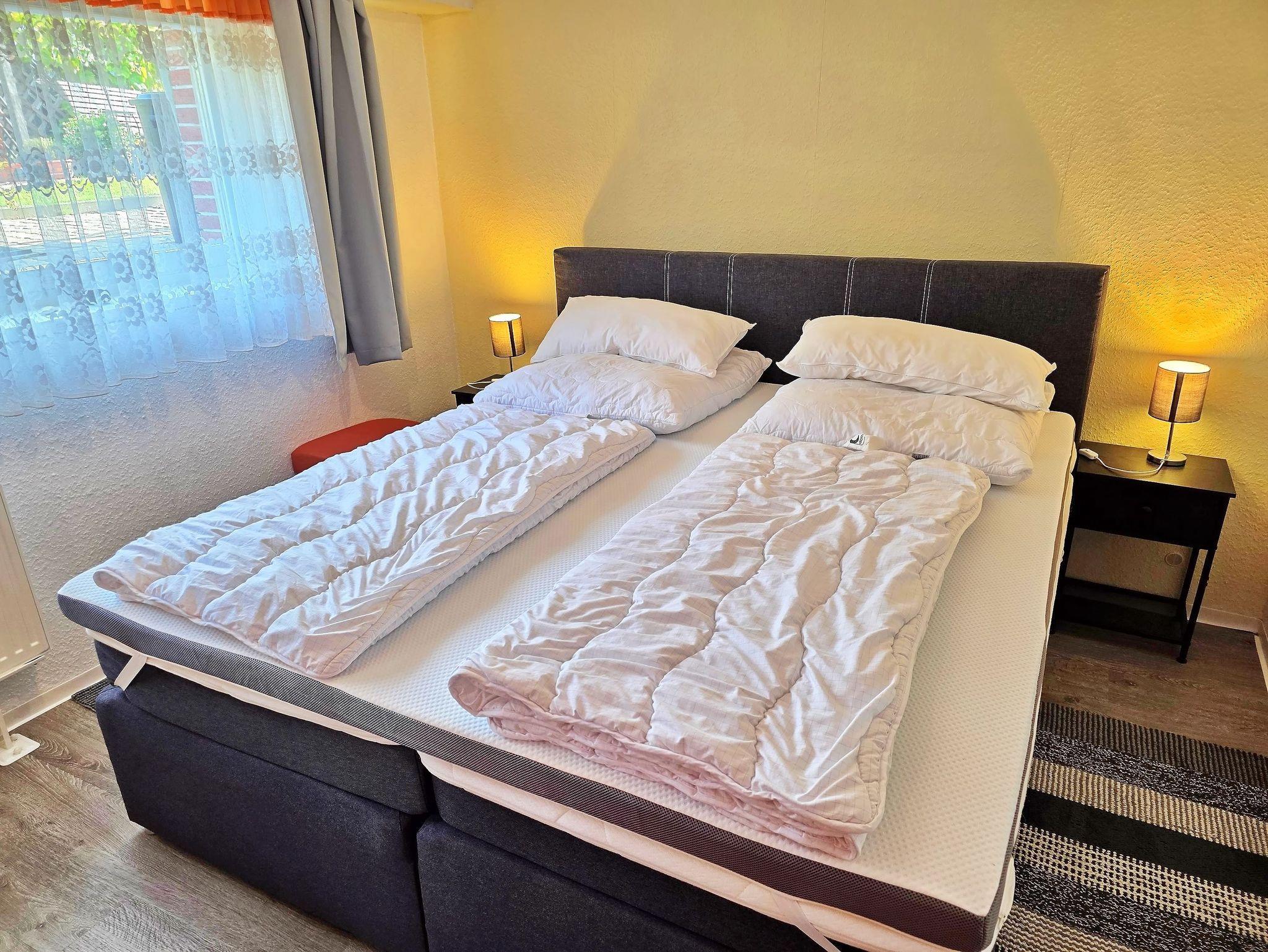 Doppelbett Boxspringbett, 1,80 x 2,00 Meter, Nachtschränke mit Lampen, Kleiderschrank.