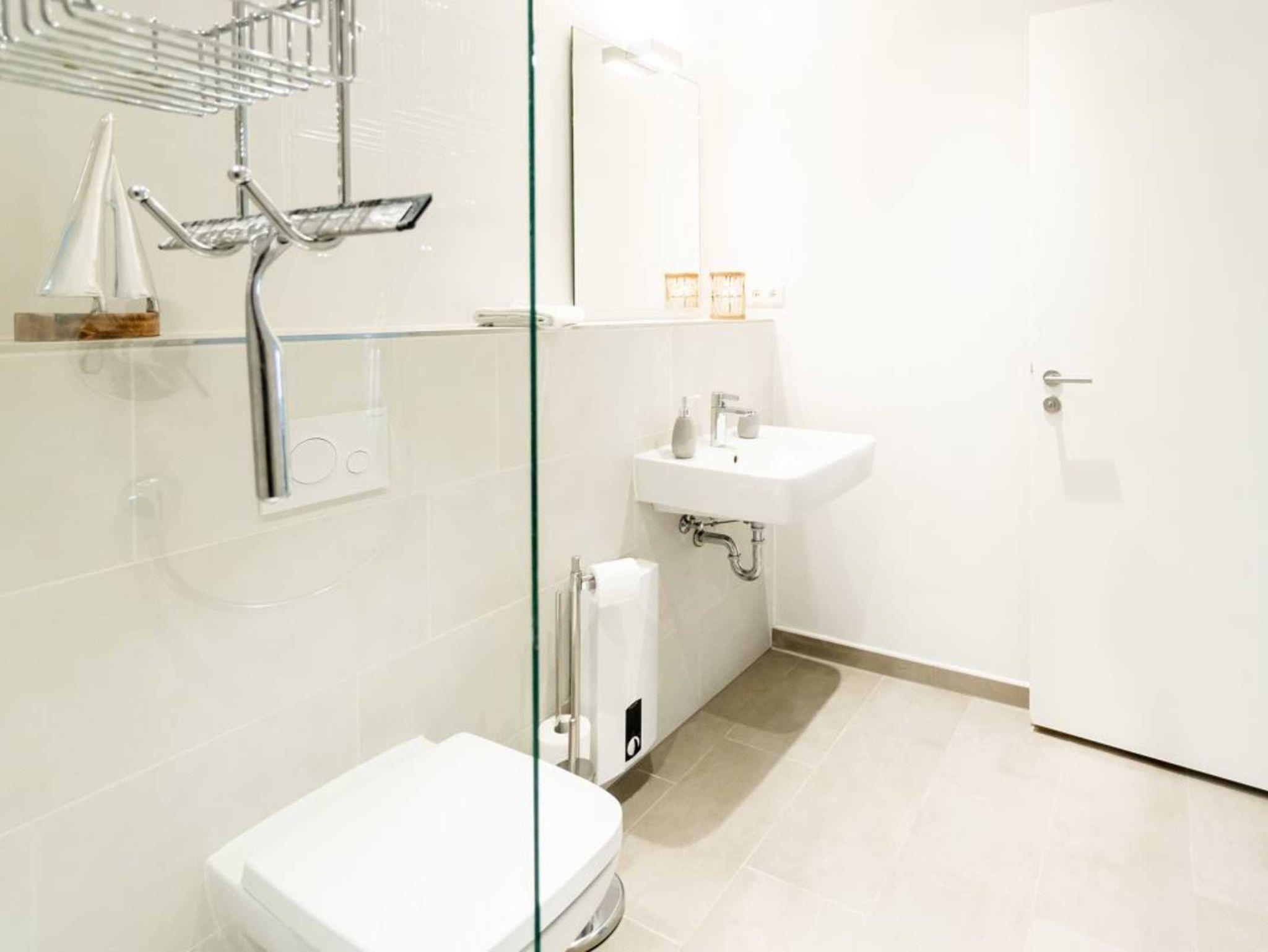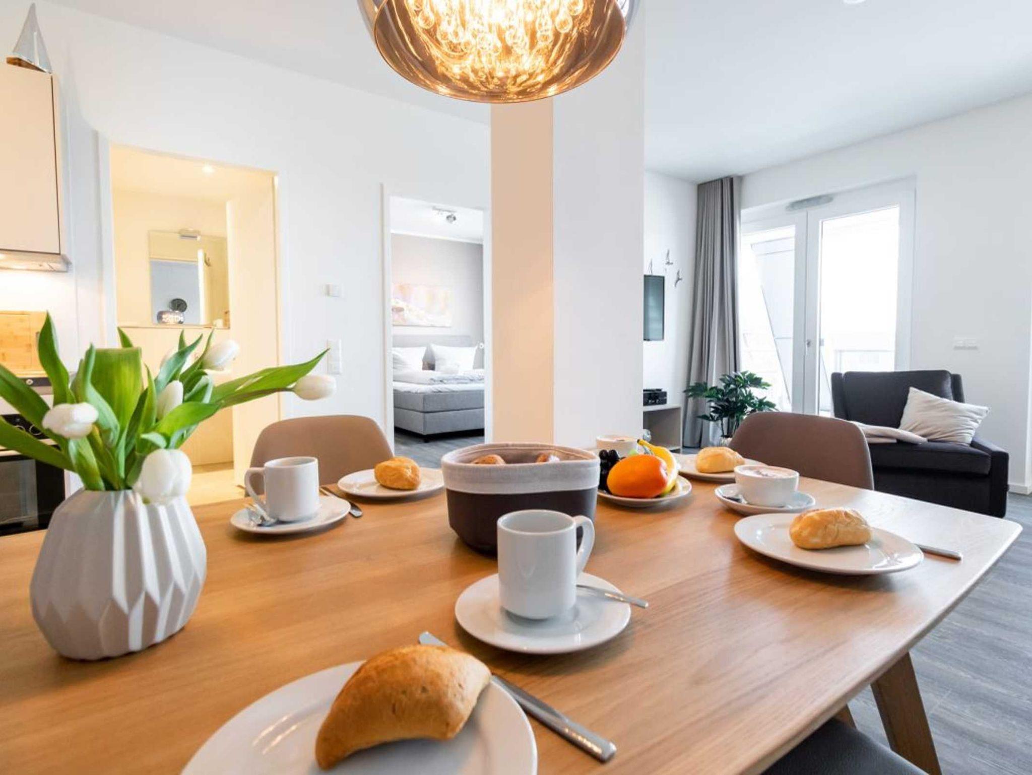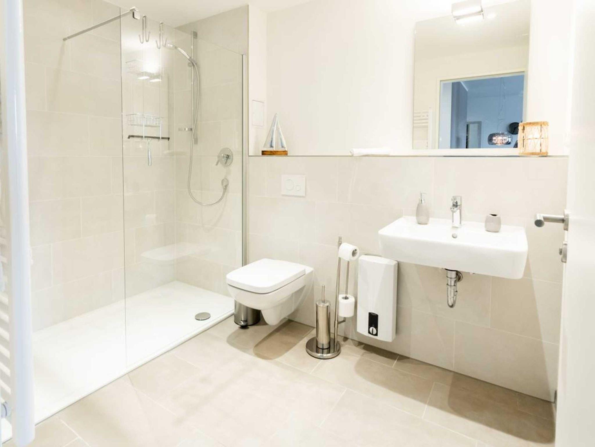 Ihr Urlaubsmorgen beginnt in einem innenliegenden, modernen Duschbad mit Waschbecken, WC und Handtuchheizkörper. Die Raumtemperatur im gesamten Appartement lässt sich über eine Fußbodenheizung steuern. Wir empfangen Sie im Hotelcharakter ähnlichem Stil. Somit sind bei Anreise die Betten für 2 Personen bereits bezogen und Handtücher liegen bereit. Eine Belegung ist mit maximal 4 Personen möglich. Für Gäste, die mit dem PKW anreisen bietet das Parkhaus im Alten Hafen in 300 Meter Stellplätze gegen Gebühr. Haustiere sind in der Nichtraucherwohnung nicht gestattet.