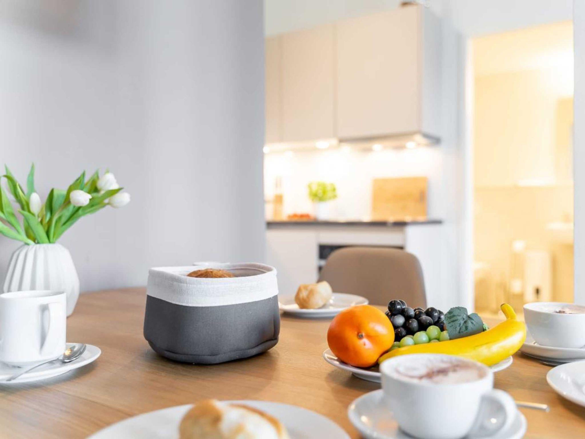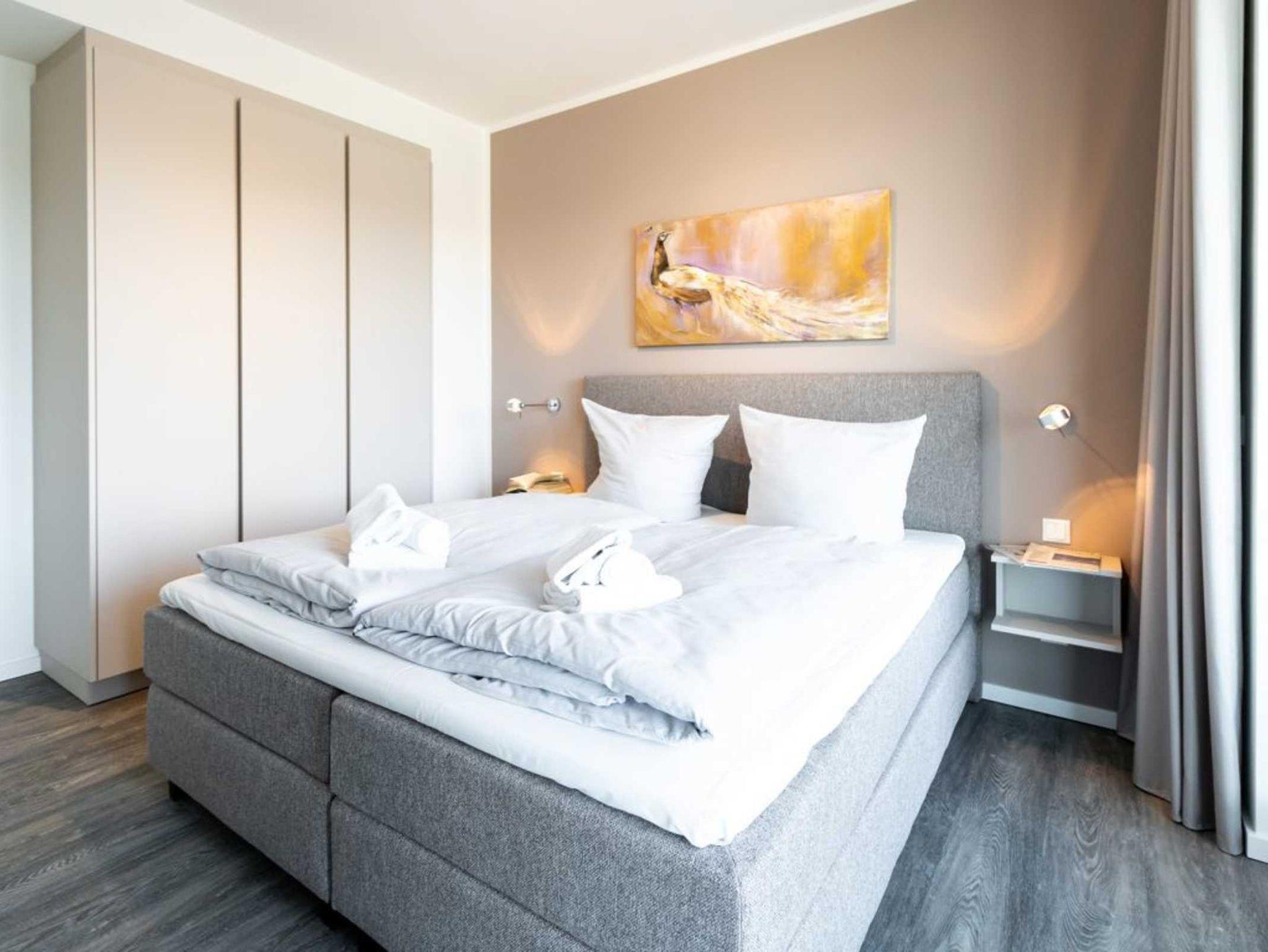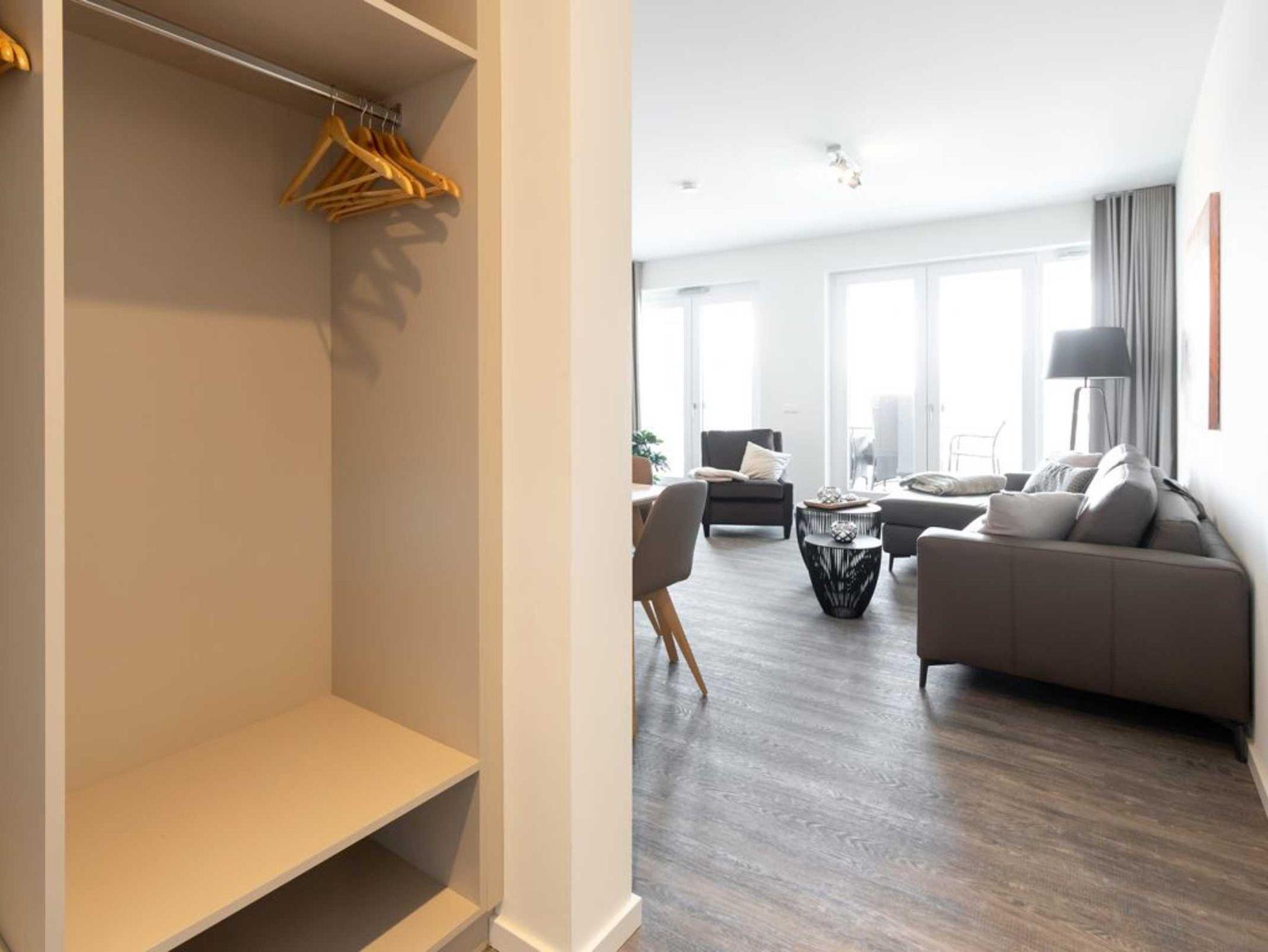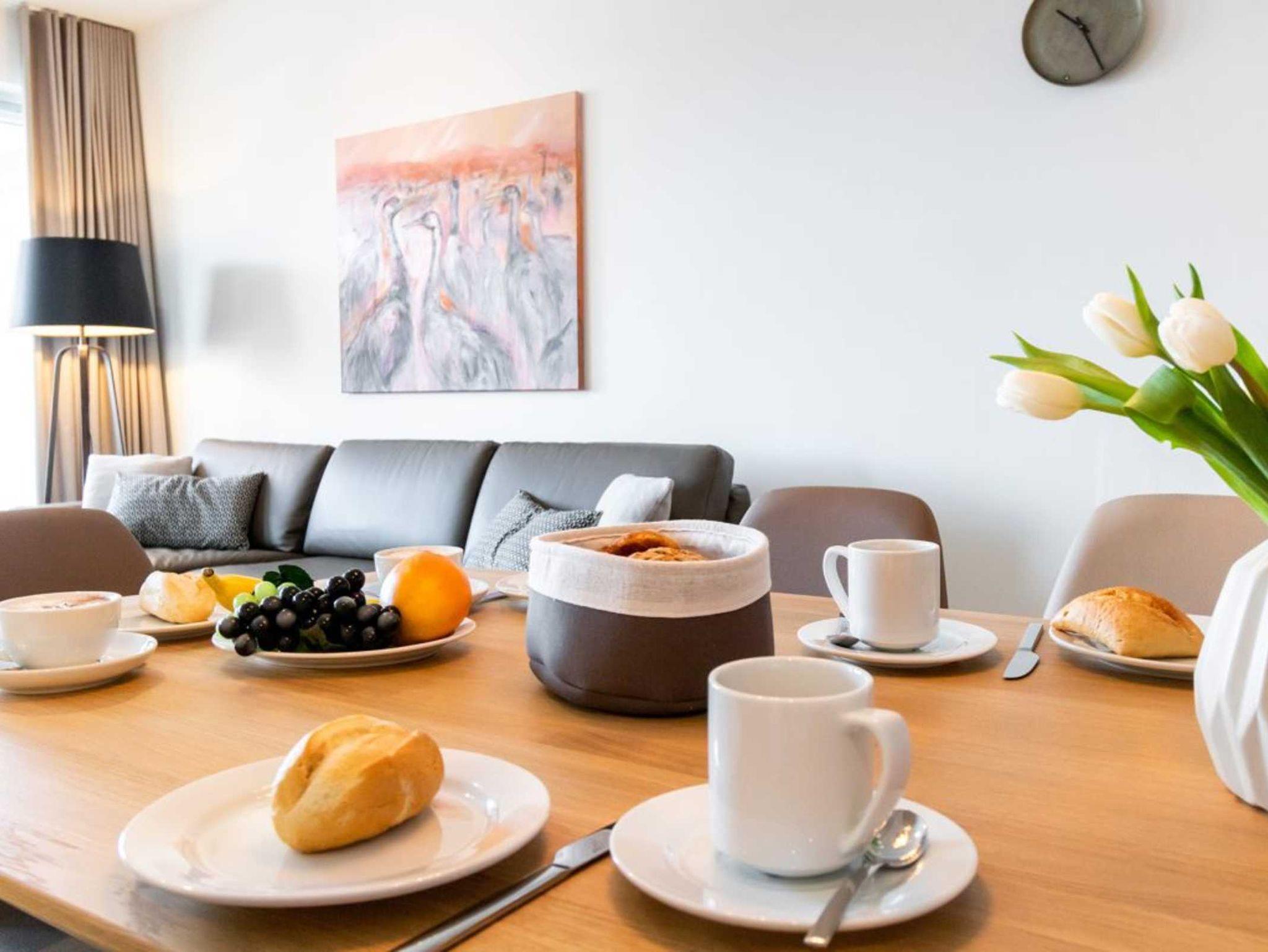 Ihr Urlaubsmorgen beginnt in einem innenliegenden, modernen Duschbad mit Waschbecken, WC und Handtuchheizkörper. Die Raumtemperatur im gesamten Appartement lässt sich über eine Fußbodenheizung steuern. Wir empfangen Sie im Hotelcharakter ähnlichem Stil. Somit sind bei Anreise die Betten für 2 Personen bereits bezogen und Handtücher liegen bereit. Eine Belegung ist mit maximal 4 Personen möglich. Für Gäste, die mit dem PKW anreisen bietet das Parkhaus im Alten Hafen in 300 Meter Stellplätze gegen Gebühr. Haustiere sind in der Nichtraucherwohnung nicht gestattet.