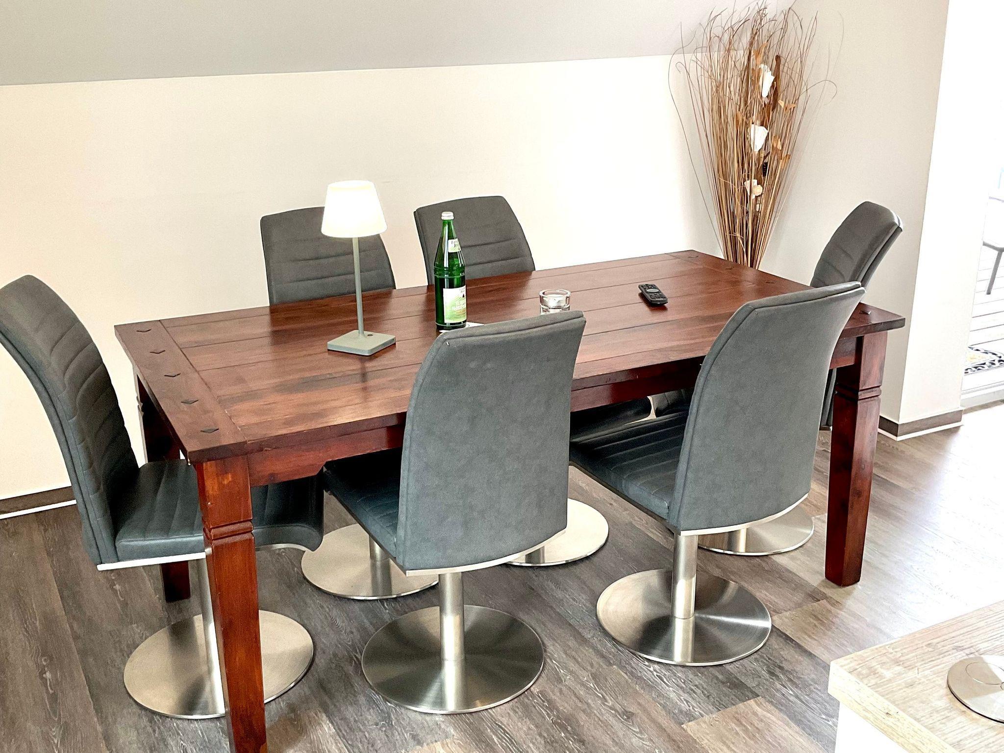 Das 4-Zimmer-Appartement ist genauestens durchdacht und sehr hochwertig eingerichtet. Auf 114m² Wohnfläche können hier bis zu 6 Personen einen traumhaften Urlaub verbringen. In dem hellen, großzügigen Wohn-/ Essbereich mit Fernseher ist die Küche geschickt integriert und voll ausgestattet (u.a. Mikrowelle, Geschirrspüler, Induktionsherd, Kühlschrank mit Gefrierfach, Backofen, Kaffeemaschine u.v.m.). 2 modern eingerichtete Schlafzimmer mit jeweils einem TV-Gerät sorgen für erholsame Nächte, dazu ein 3. Schlafzimmer mit Doppelbett und TV. Das Badezimmer ist in einer hochwertigen Bauausführung mit Badewanne, Dusche und einer Sauna. Ein weiteres Gäste WC steht und kostenloses WLAN steht Ihnen zur Verfügung. Durch seine exklusive Lage am Alten Hafen von Wismar können Sie einen traumhaften Altstadt- und Hafenblick genießen. Ein PKW-Stellplatz direkt am Haus steht Ihnen kostenfrei während Ihres Aufendhalts zur Verfügung. Eine Waschmaschine steht Ihnen zur Verfügung.