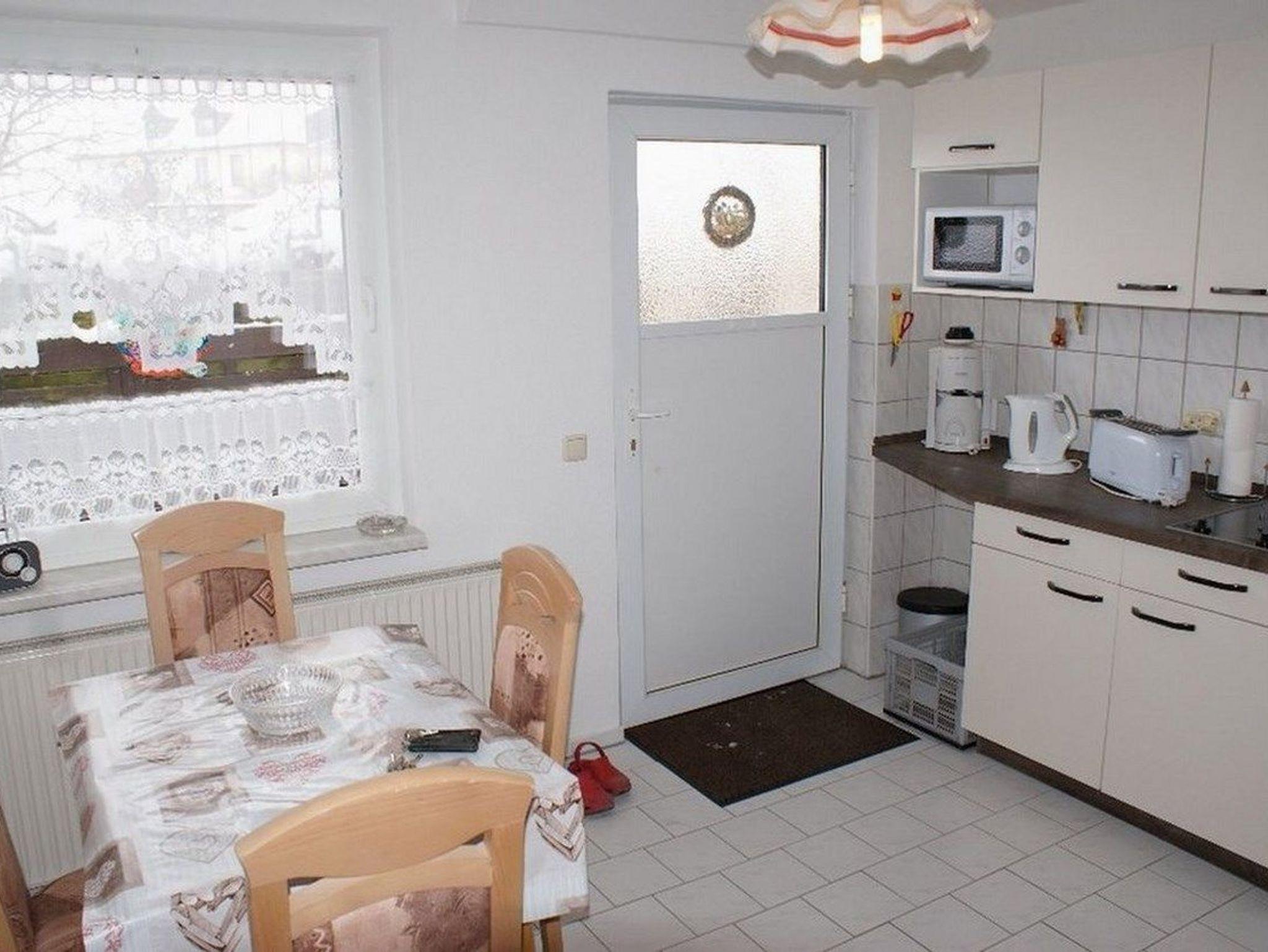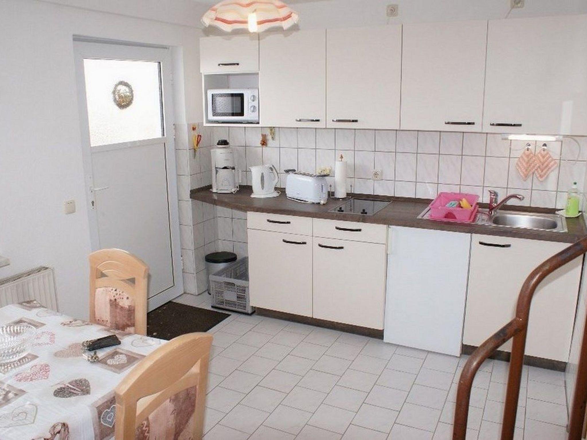 - vollausgestattete Küche mit gemütlicher Essecke (u.a. Toaster, 2-Plattenherd, kleiner Backofen, Wasserkocher, Kaffeemaschine, Kühlschrank, Tisch sowie 4 Stühlen, Mikrowelle)