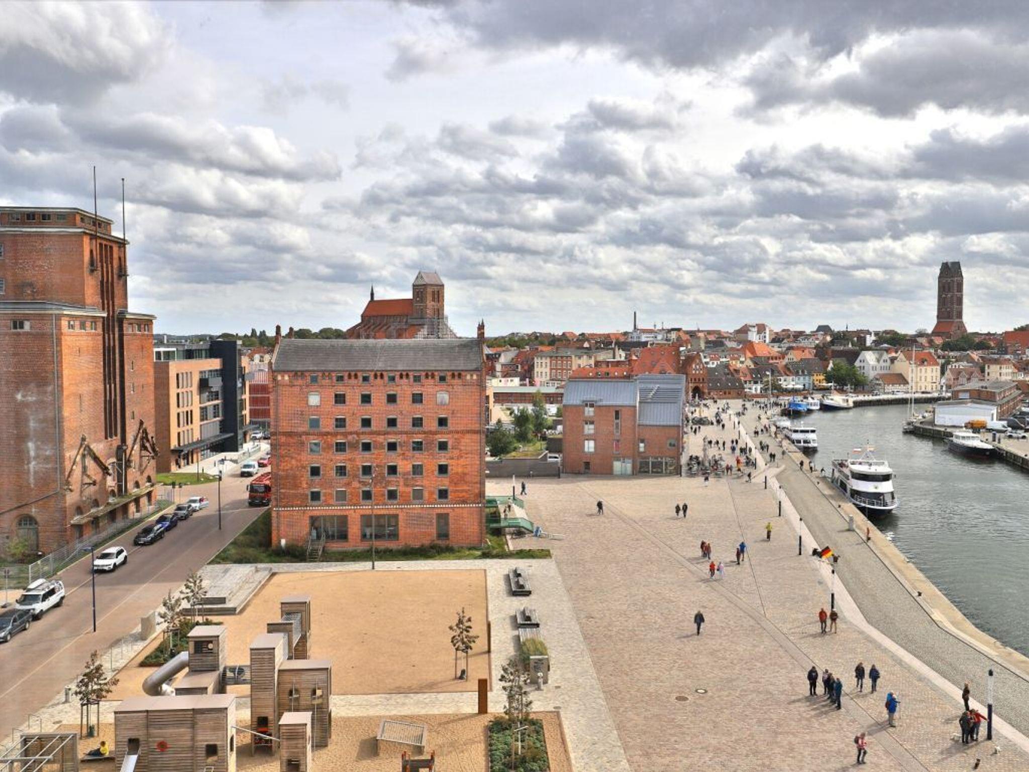 Der ehemalige Getreidespeicher an der Spitze des Wismarer Hafens wurde 2018 komplett saniert. Entstanden ist ein exklusives Gebäude, der Ohlerich Speicher, mit 48 luxuriösen Ferienappartements und einem Lift.