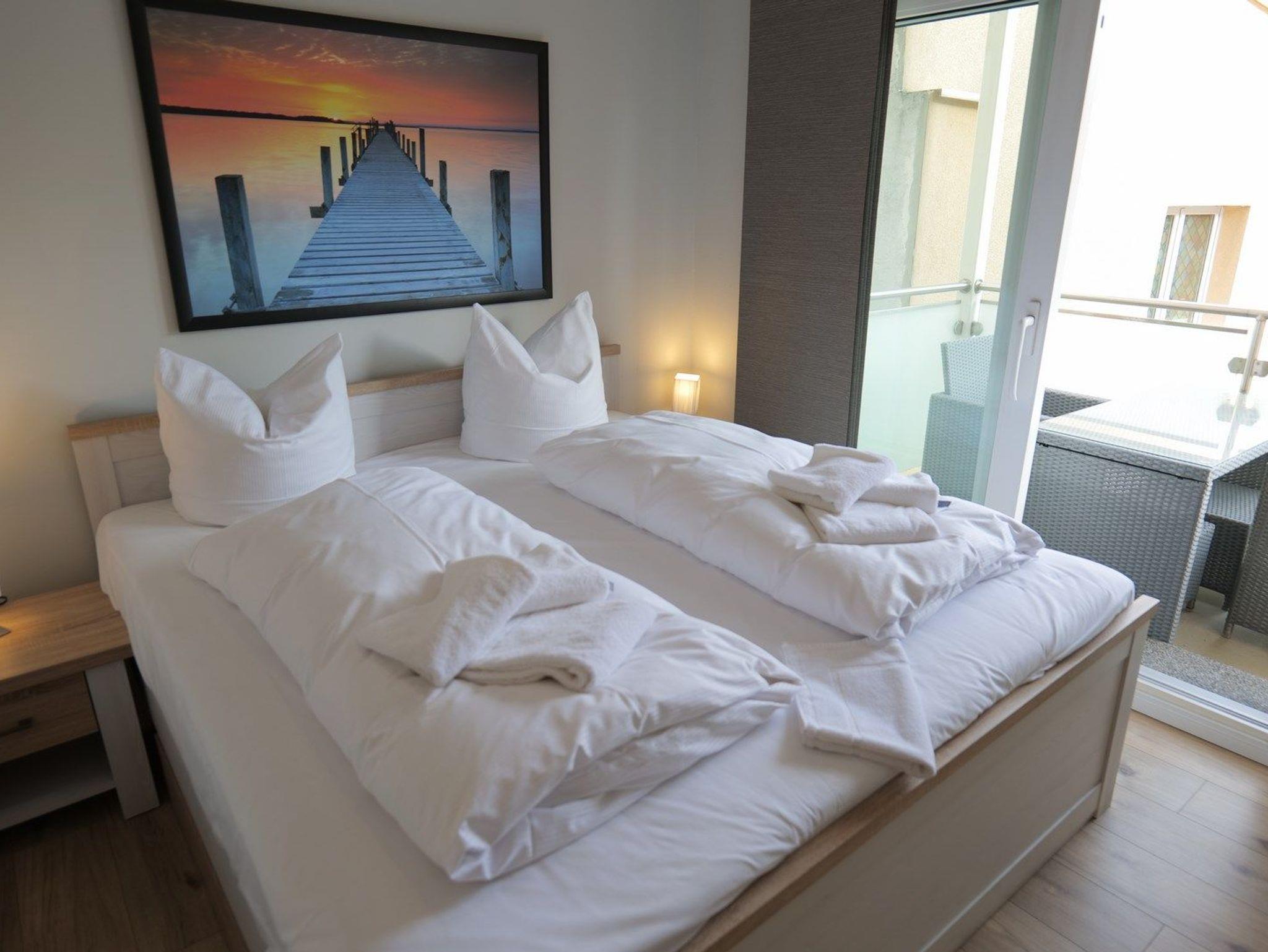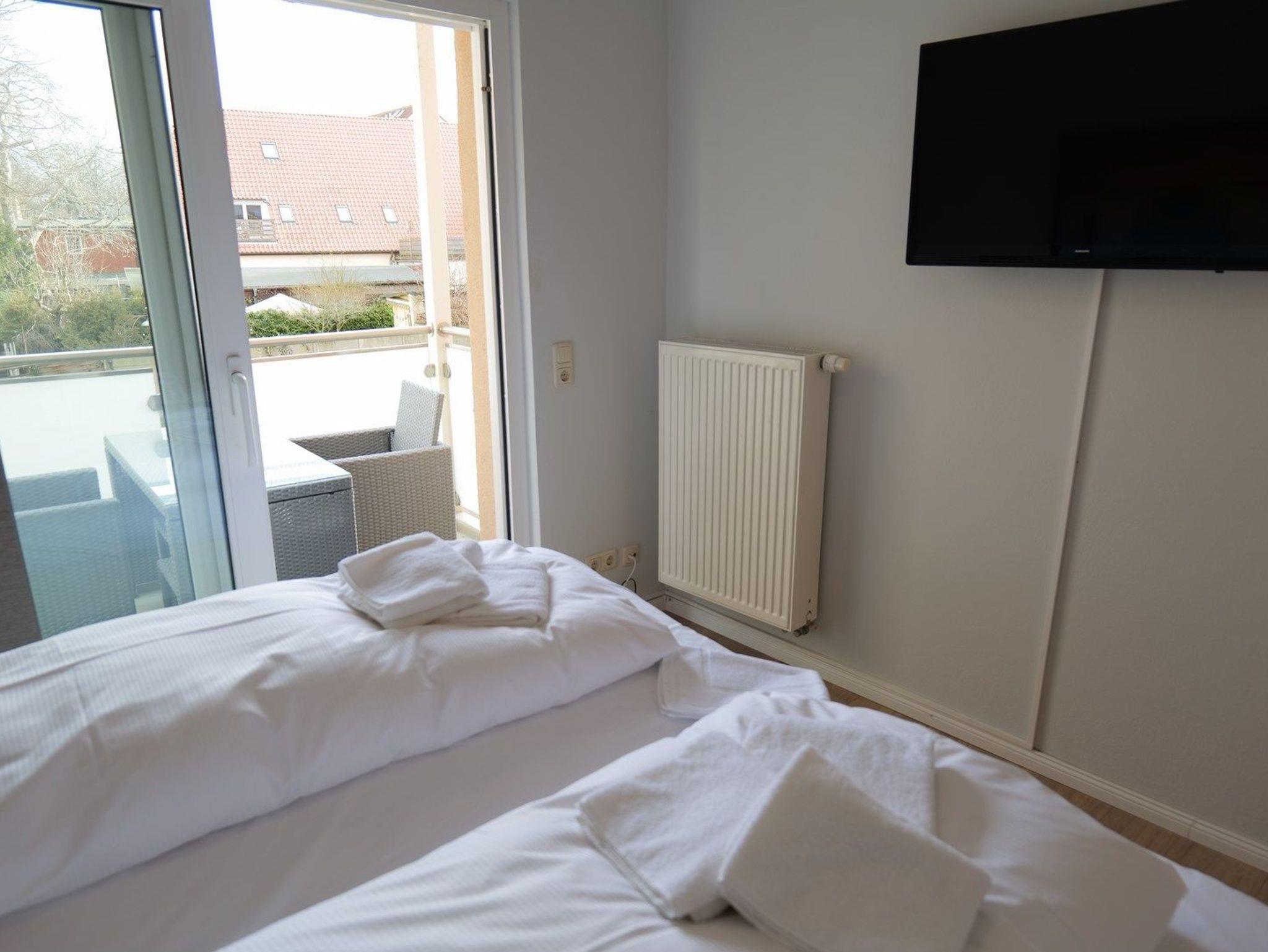 - separates Schlafzimmer mit Doppelbett (1,80 x 2,00m) und Flat-TV (ruhig gelegen zum Innenhof)