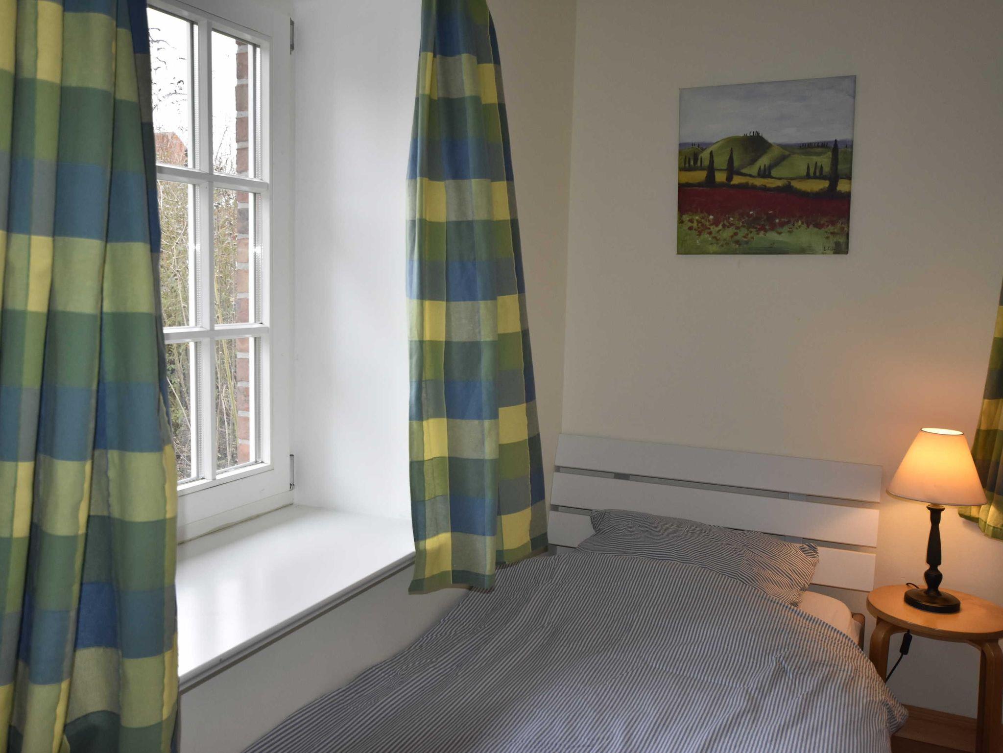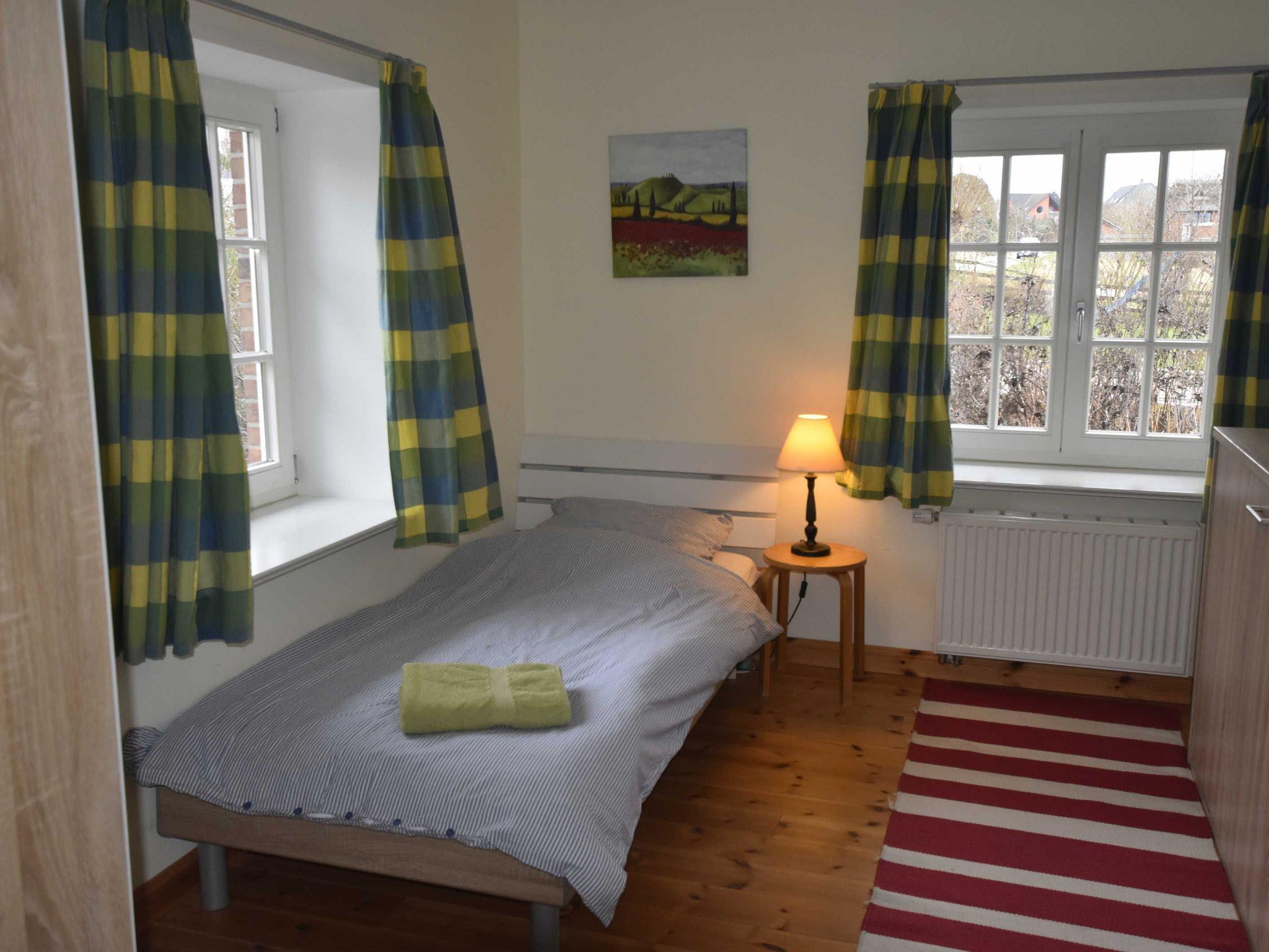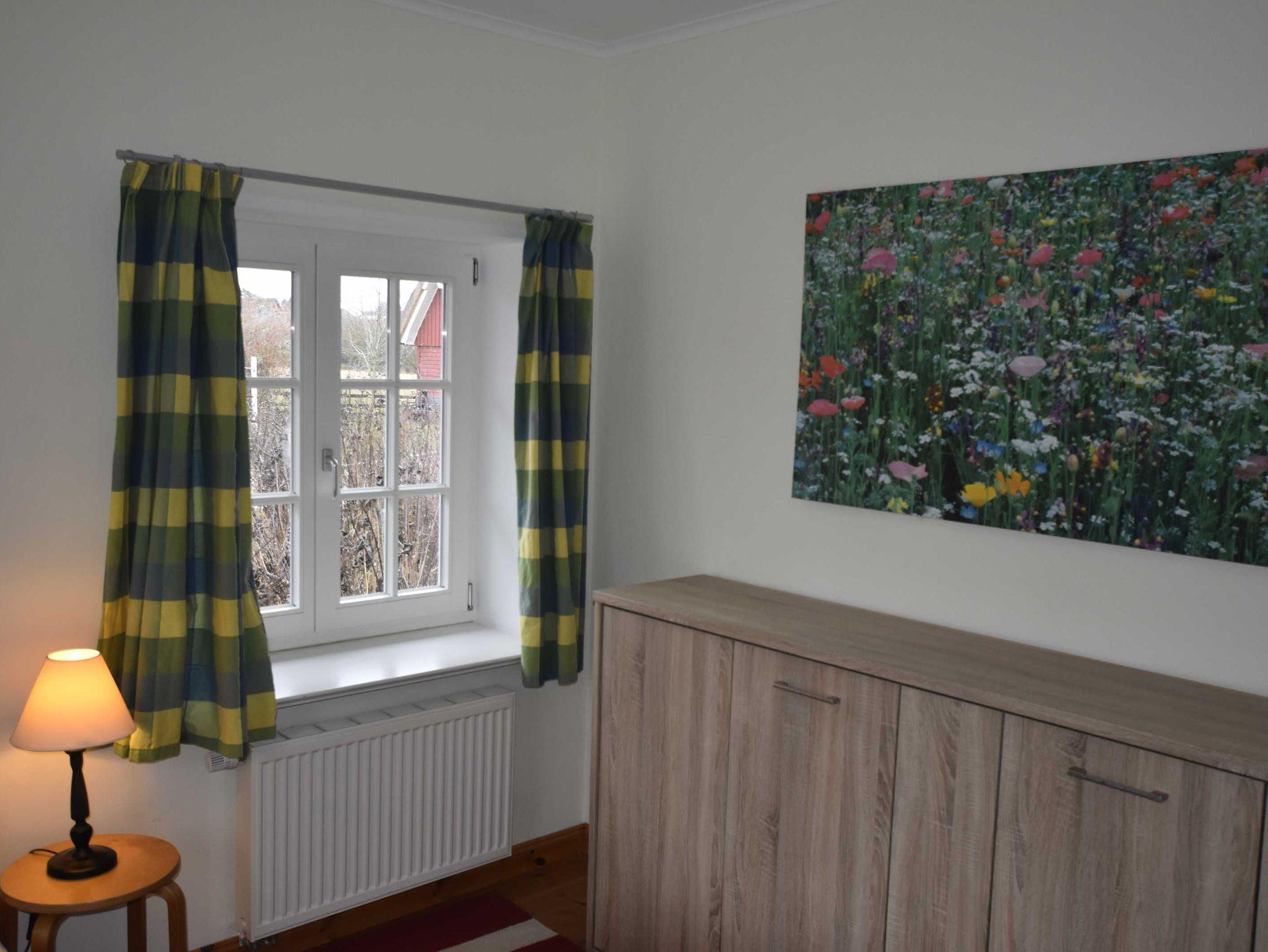 3-Raum-Ferienwohung im eleganten Landhausstil. Wohnbereich mit gemütliche Sitzecke und Eßbereich und Zugang zur Terrasse. Küche mit Backofen, 4-Plattenherd, Mikrowelle, Geschirrspüler, Kühlschrank mit Gefierfach, Toaster, Kaffeemaschine, Wasserkocher. 1 Schlafzimmer mit Doppelbett, 1 Schlafzimmer mit Einzelbett und ausklappbaren Schrankbett Zusätzliche Aufbettung für 2 Personen auf Schlafcouch im Wohnzimmer. Badezimmer mit Du / WC / Waschmaschine.
