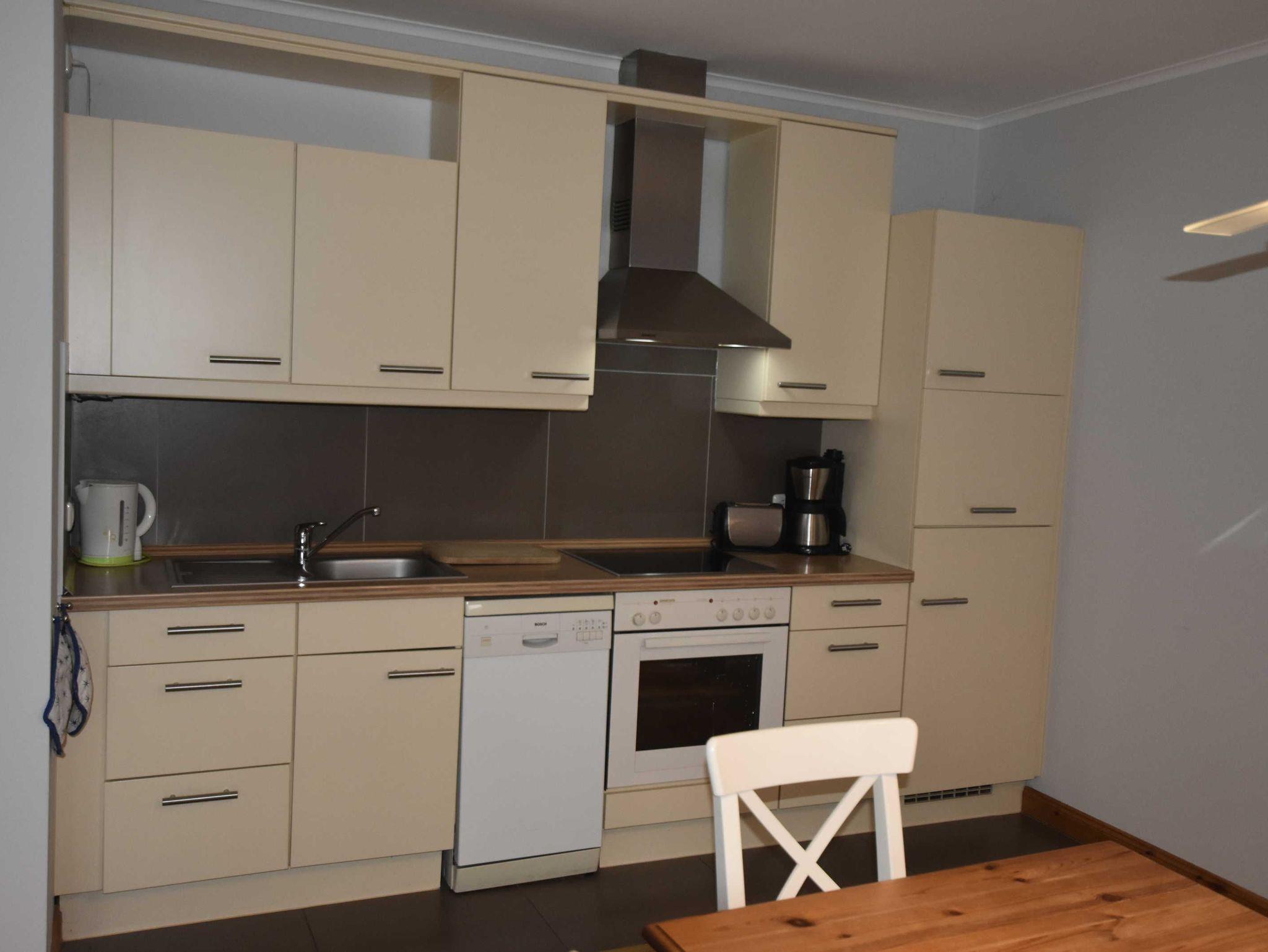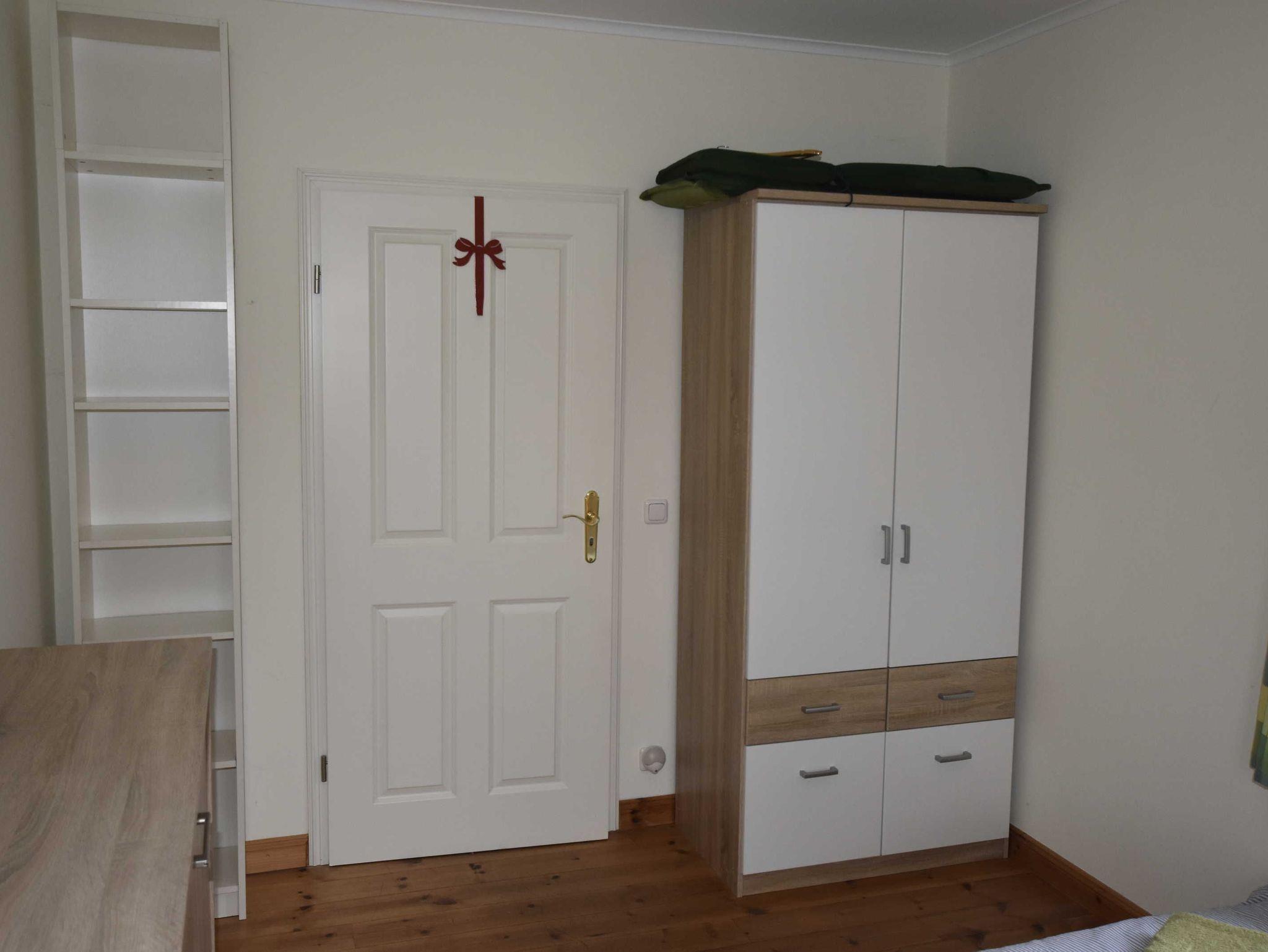Fewo hat einen Wohnbereich mit gemütliche Sitzecke, Eßtisch und mit voll ausgestatteter Küche. 1 Schlafzimmer mit Doppelbett, 1 Schlafzimmer mit Einzelbett und ausklappbaren Zustellbett. Eine zusätzliche Aufbettung wäre auf der Couch im Wohnzimmer machbar. Badezimmer mit Du / WC / Waschmachine.